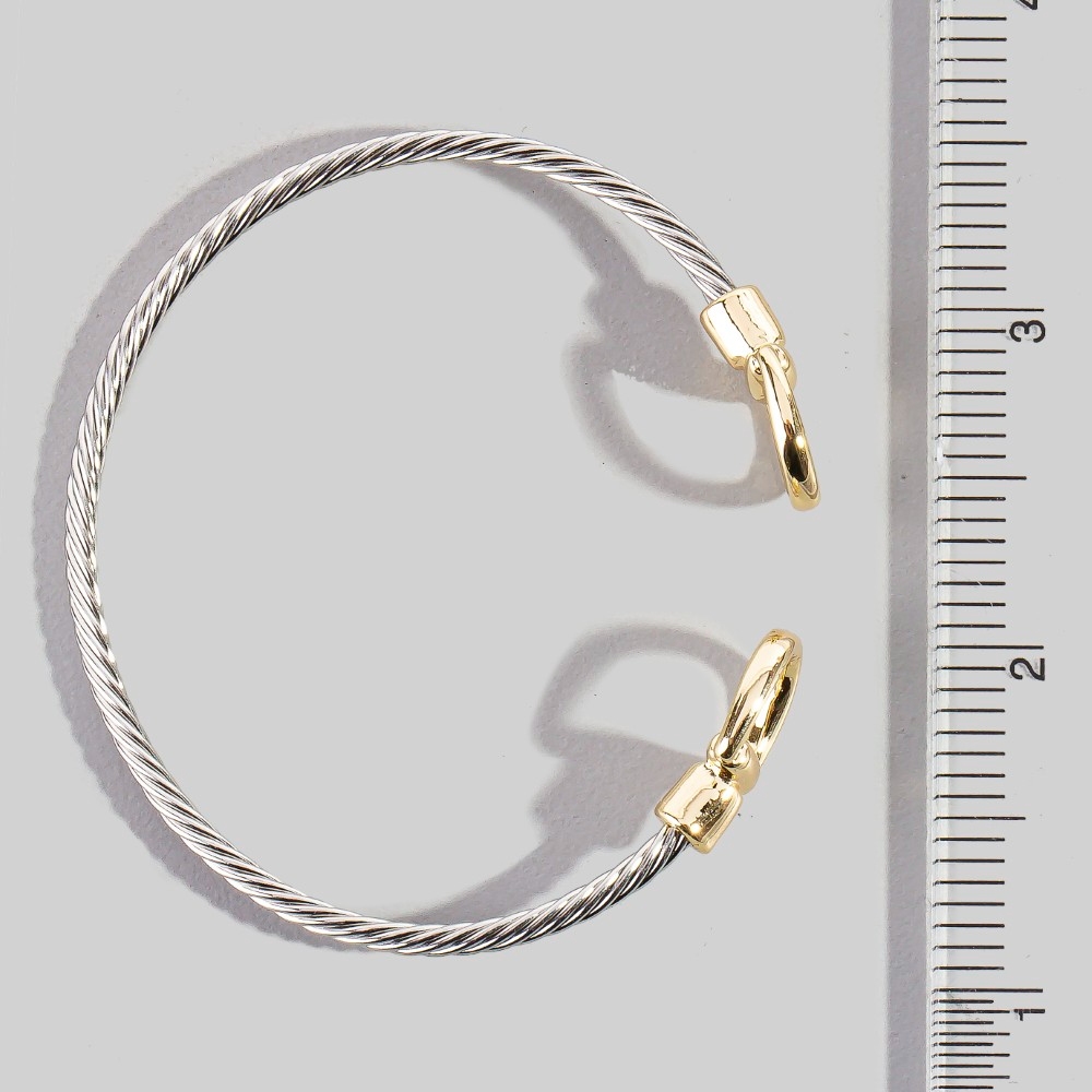 A versatile piece that can be dressed up or down, this cuff bracelet displays a unique stainless steel two tone d link rope design. This item is perfect for adding some color and vibrancy to any outfit. Available in K. This item is sold in packs of 12.