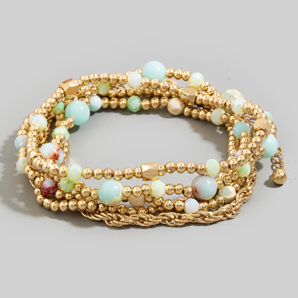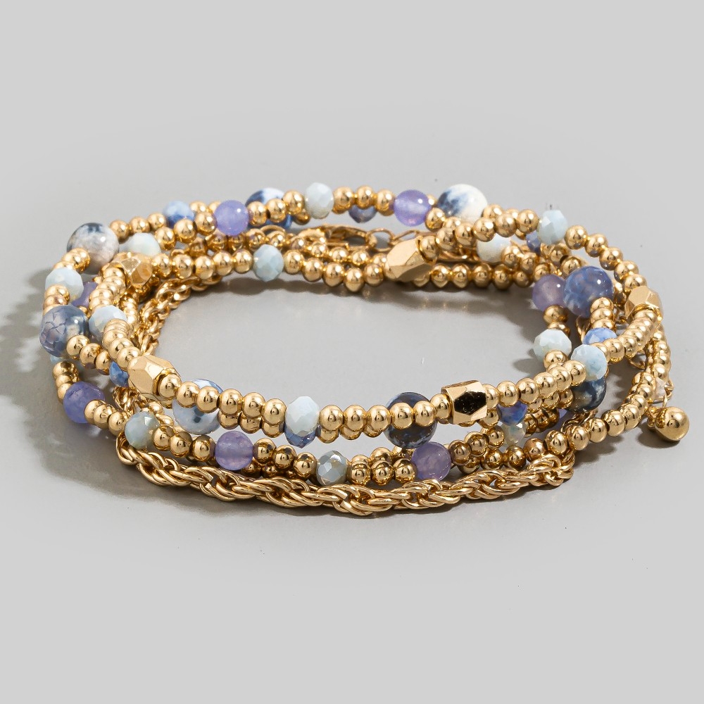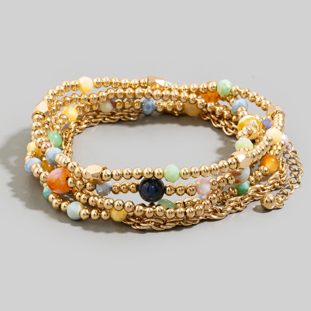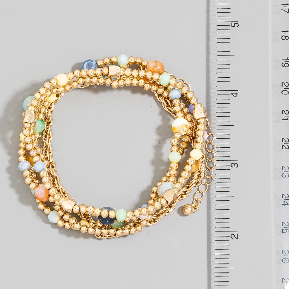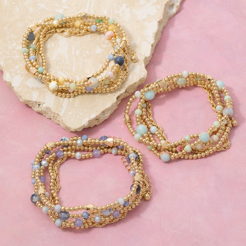 Metallic Beaded Elastic Bracelet Set