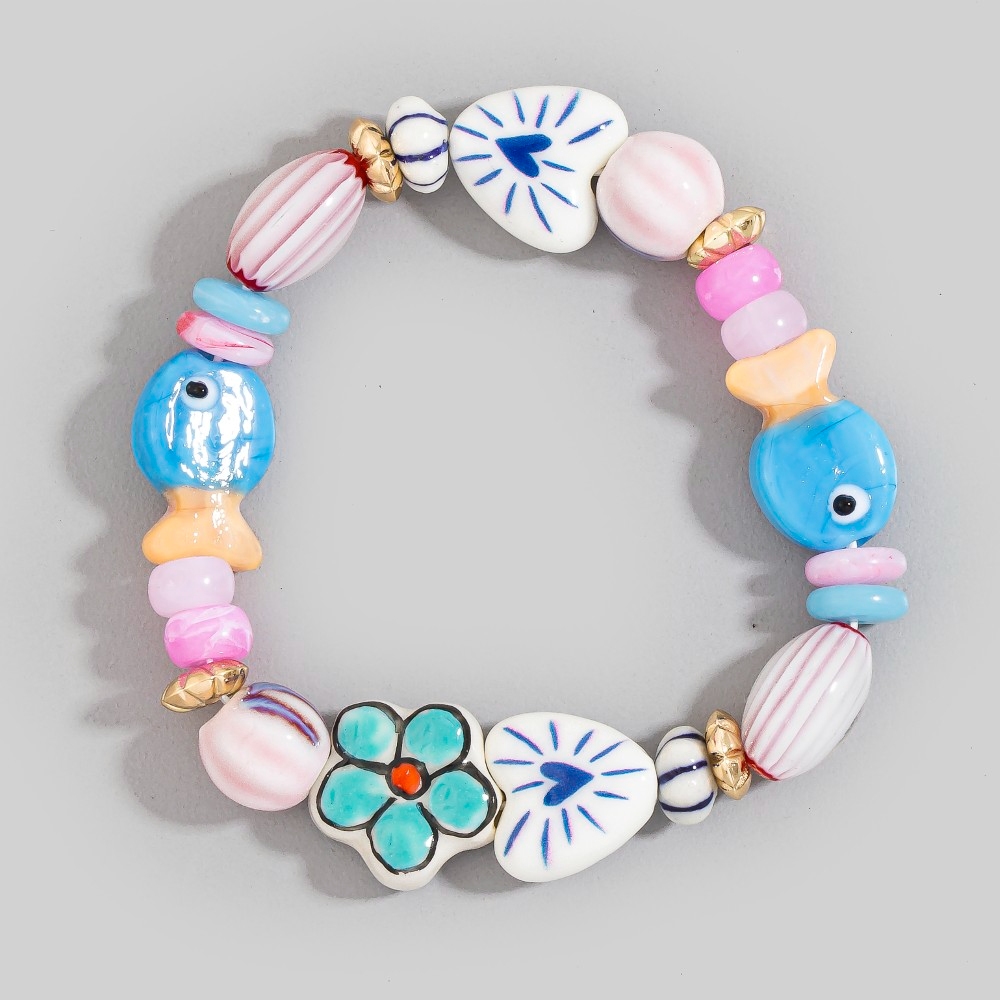 • A stunning addition to any jewelry collection, this bracelet brings a one-of-a-kind ceramic hearts and flowers beaded design. Add a dash of sophistication to your look with this versatile bracelet, a must-have for fashion enthusiasts. Available in GDMT. This item is sold in packs of 1.