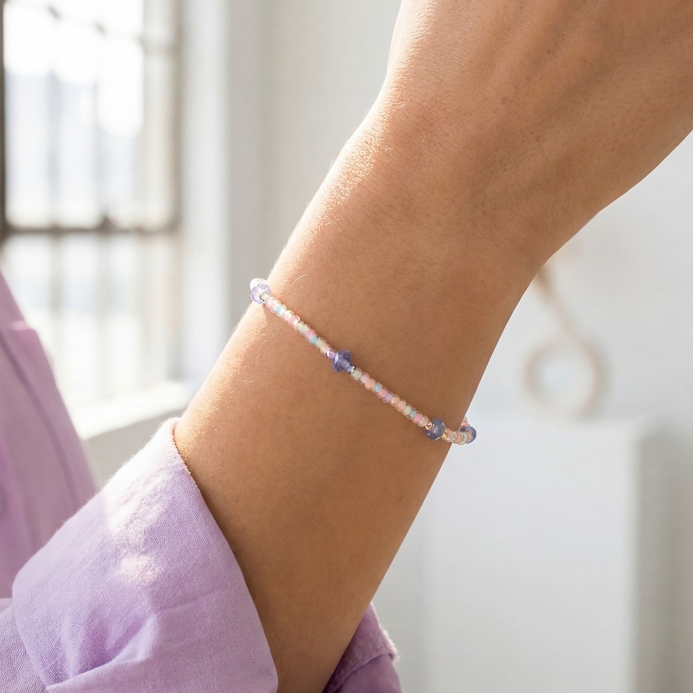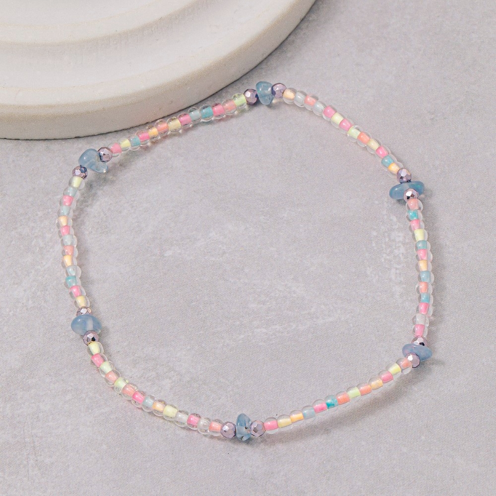 • Guaranteed to add a touch of glamour to any outfit, this bracelet adds a distinctive colorful glass beaded opal stone design. Perfect for any occasion, this versatile bracelet will enhance any outfit you wear. This item is sold in packs of 1.