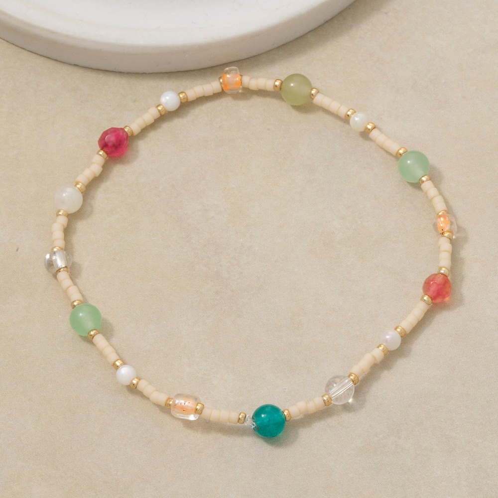Unleash your inner fashionista, this bracelet evokes a captivating mixed glass and stone beads design. The perfect way to elevate any outfit, this bracelet adds a touch of elegance and style. This item is sold in packs of 1.