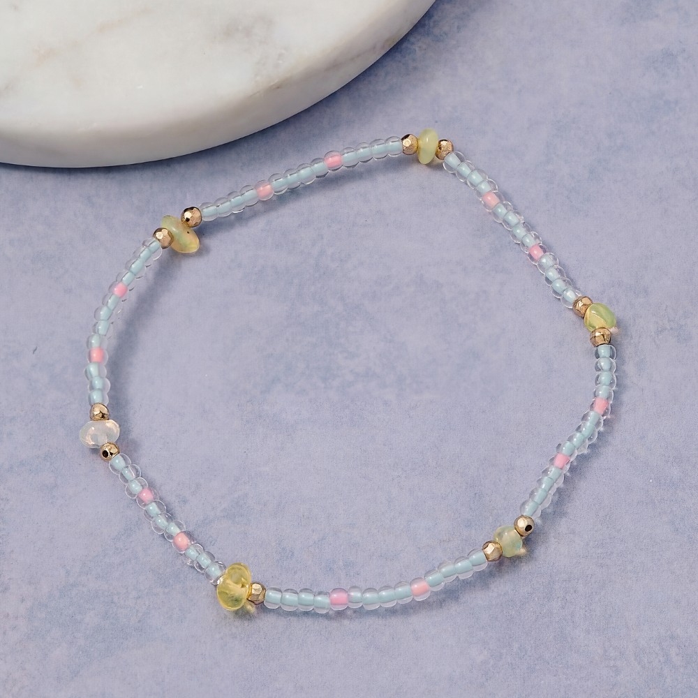 - The perfect way to add some sparkle to your outfit, this bracelet shows off a distinctive opal stone glass beads design. The perfect way to elevate any outfit, this bracelet adds a touch of elegance and style. This item is sold in packs of 1.