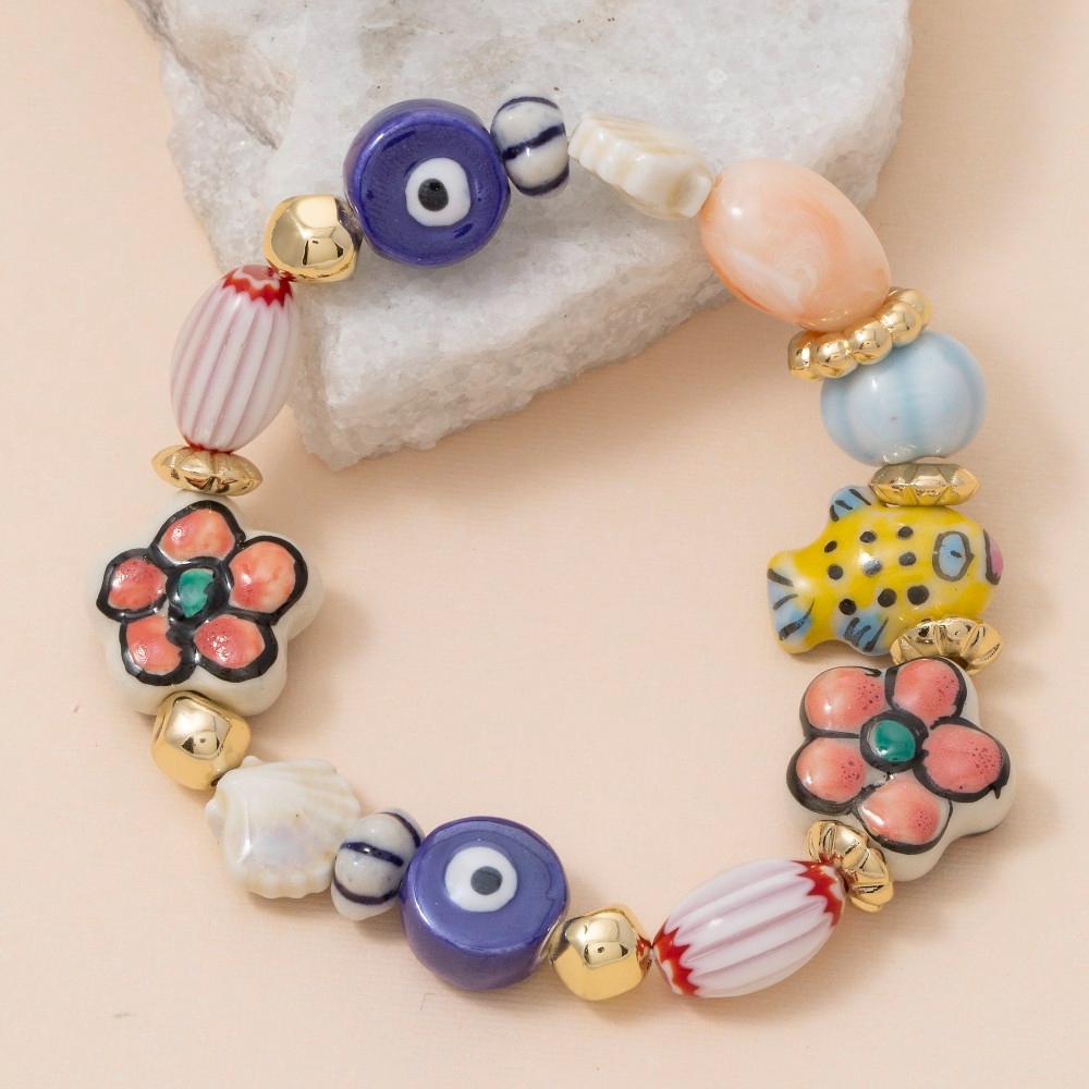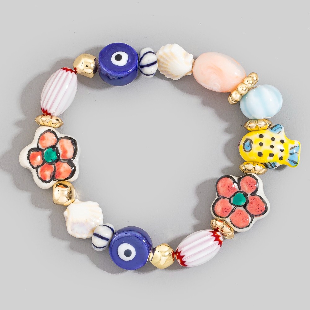 • Chic, sophisticated, and always in style, this bracelet encompasses a grand sea life floral ceramic beaded design. This item adds the perfect finishing touch to any outfit, making it stand out from the crowd. Available in GDMT. This item is sold in packs of 1.