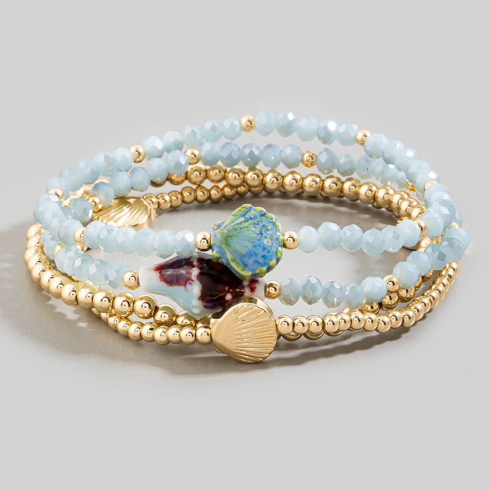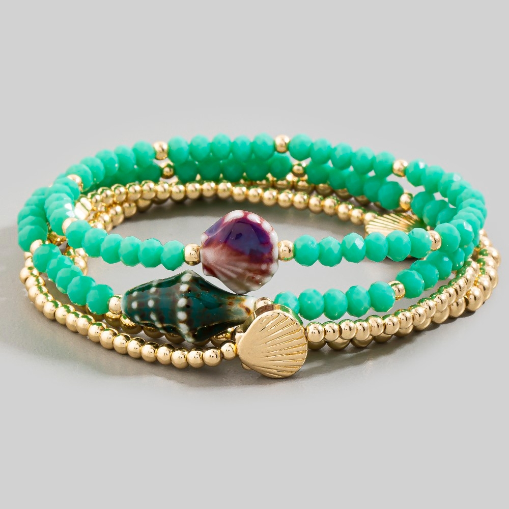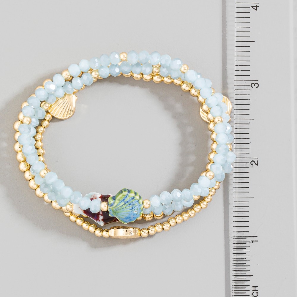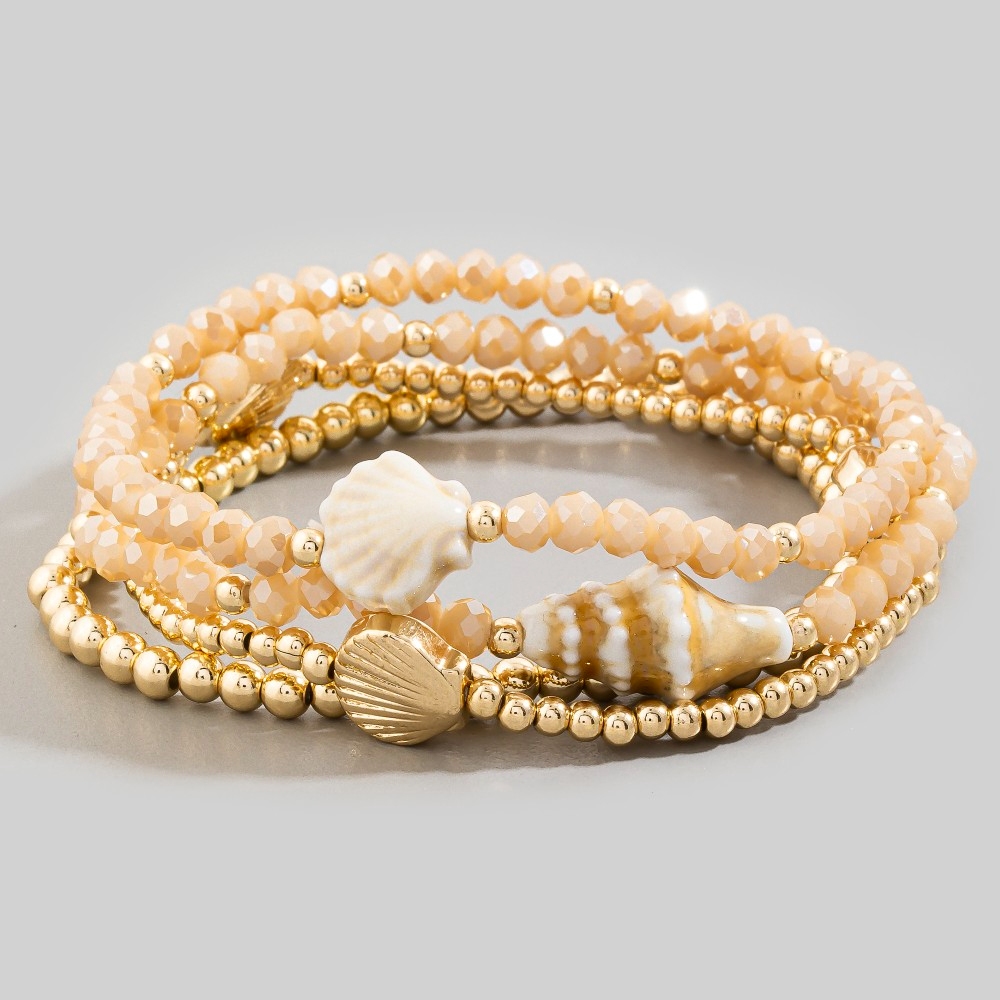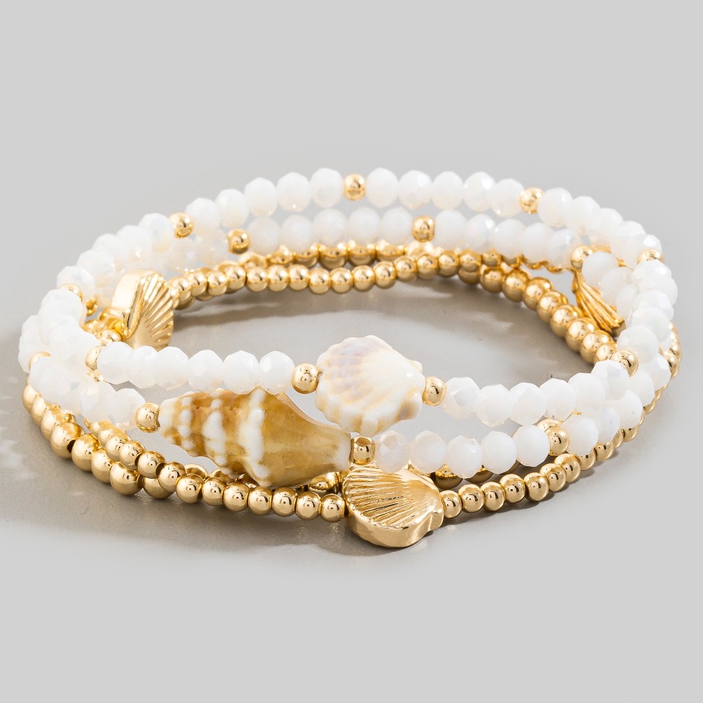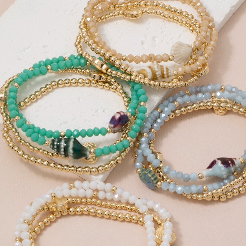 • Make a statement, this bracelet radiates a sleek shell charms faceted and metallic beaded set design. Perfect for dressing up or down, this versatile bracelet adds a touch of sophistication to any look. Available in COF, SG, TQ, WHT. This item is sold in packs of 1.