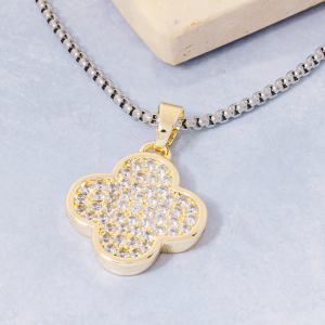 Gold Dipped Two Tone Cz Pave Clover Pendant Necklace