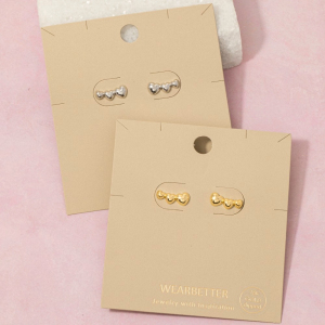 Gold Dipped Cz Pave Bow Ribbon Stud Earrings