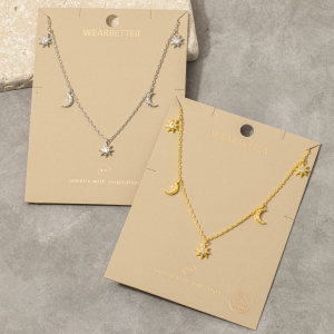 Gold Dipped Cz Pave Stars Moon Station Charms Necklace