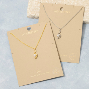 Gold Dipped Pearl Stud Ripple Coin Pendant Necklace