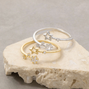 Gold Dipped Cz Double Star Open Ring
