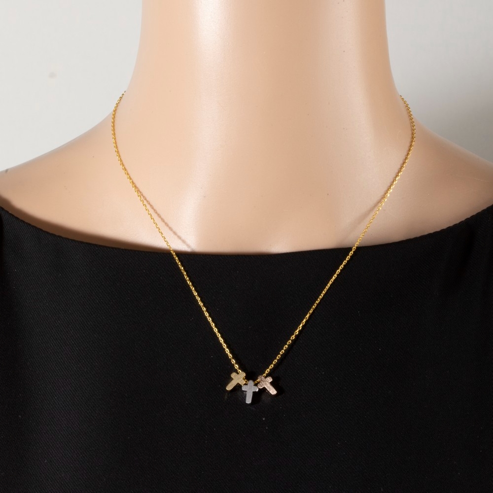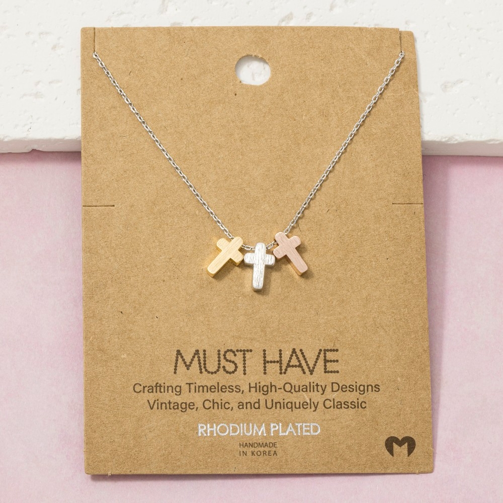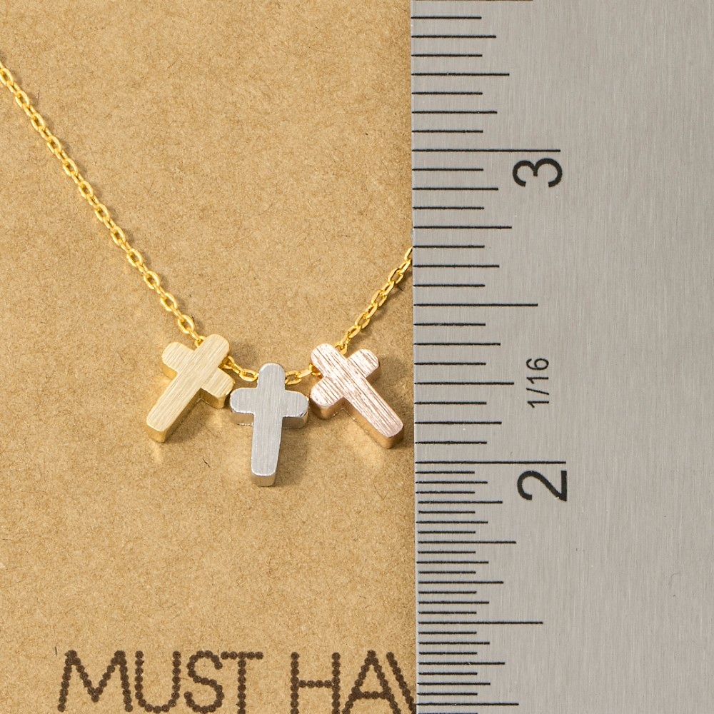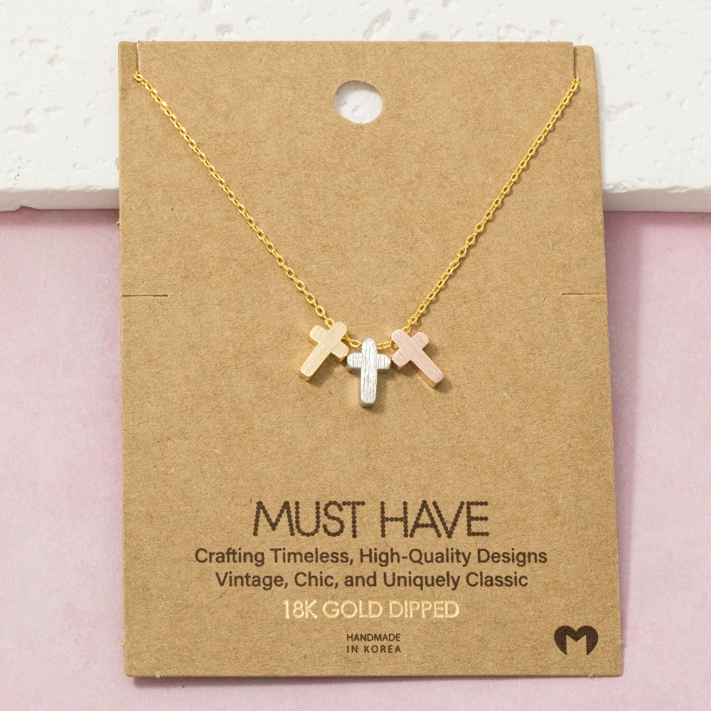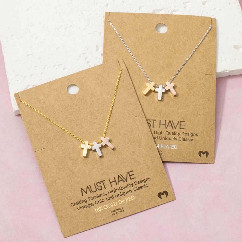 Bold, daring, and endlessly stylish, this pendant necklace boasts a magnificent 18k gold dipped triple cross design. This item is the perfect way to add some texture and interest to any outfit. Available in G, S. This item is sold in packs of 1.