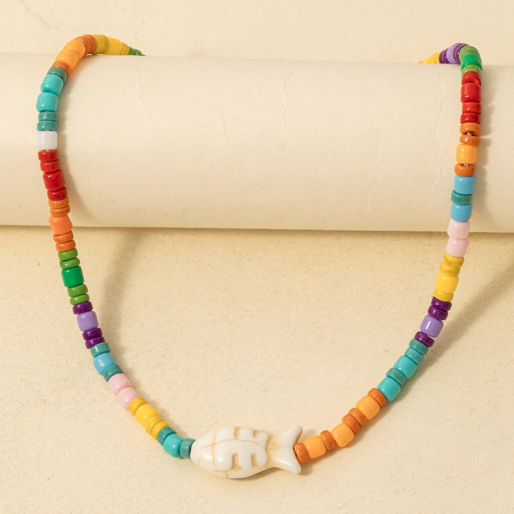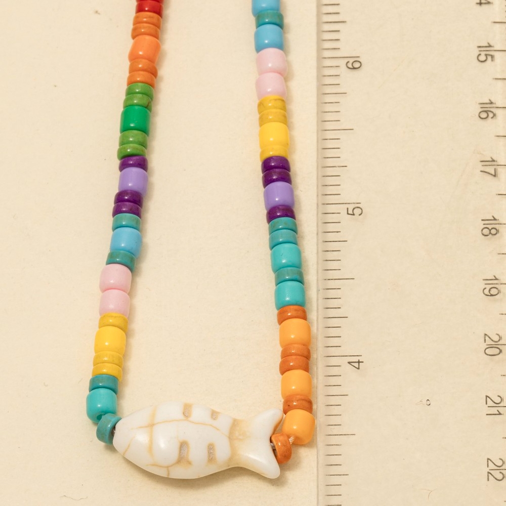 • A stunning addition to any jewelry collection, this necklace features an exceptional fish pendant vibrant mixed beaded design. Unleash the potential of your wardrobe with this versatile necklace, ensuring a touch of elegance in every ensemble. Available in MU. This item is sold in packs of 1.