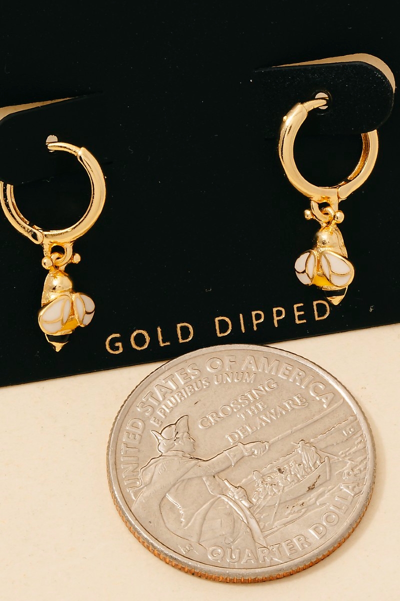 Gold Dipped Epoxy Bee Charm Hoop Earrings