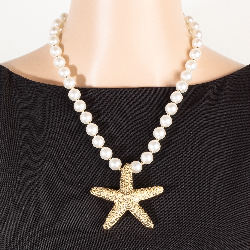 • Effortlessly chic and sophisticated, this pendant necklace presents a striking gold dipped starfish pendant pearl beaded necklace design. Add some personality to your outfit with this stylish pendant necklace. Available in GDCRM. This item is sold in packs of 1.