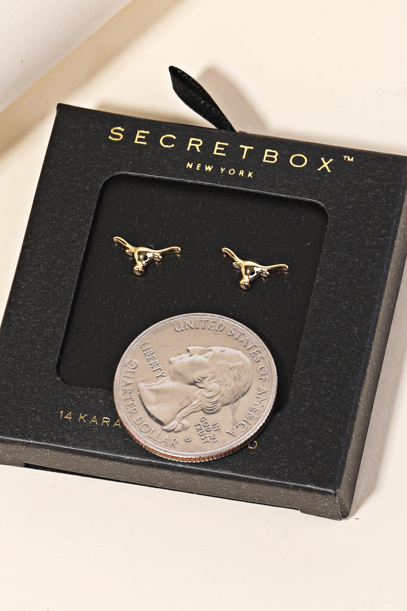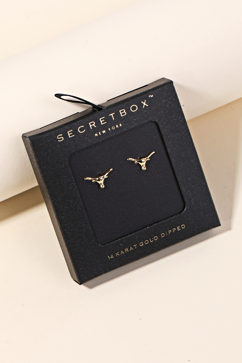 - This piece is both timeless and contemporary, this pair of earrings offers a remarkable secret box gold dipped long horn earrings design. Perfect for adding a pop of color or texture to any outfit, this accessory is a must-have. This item is sold in packs of 1.