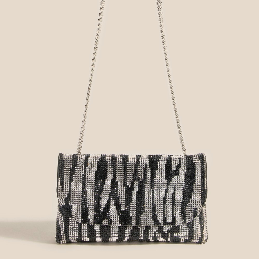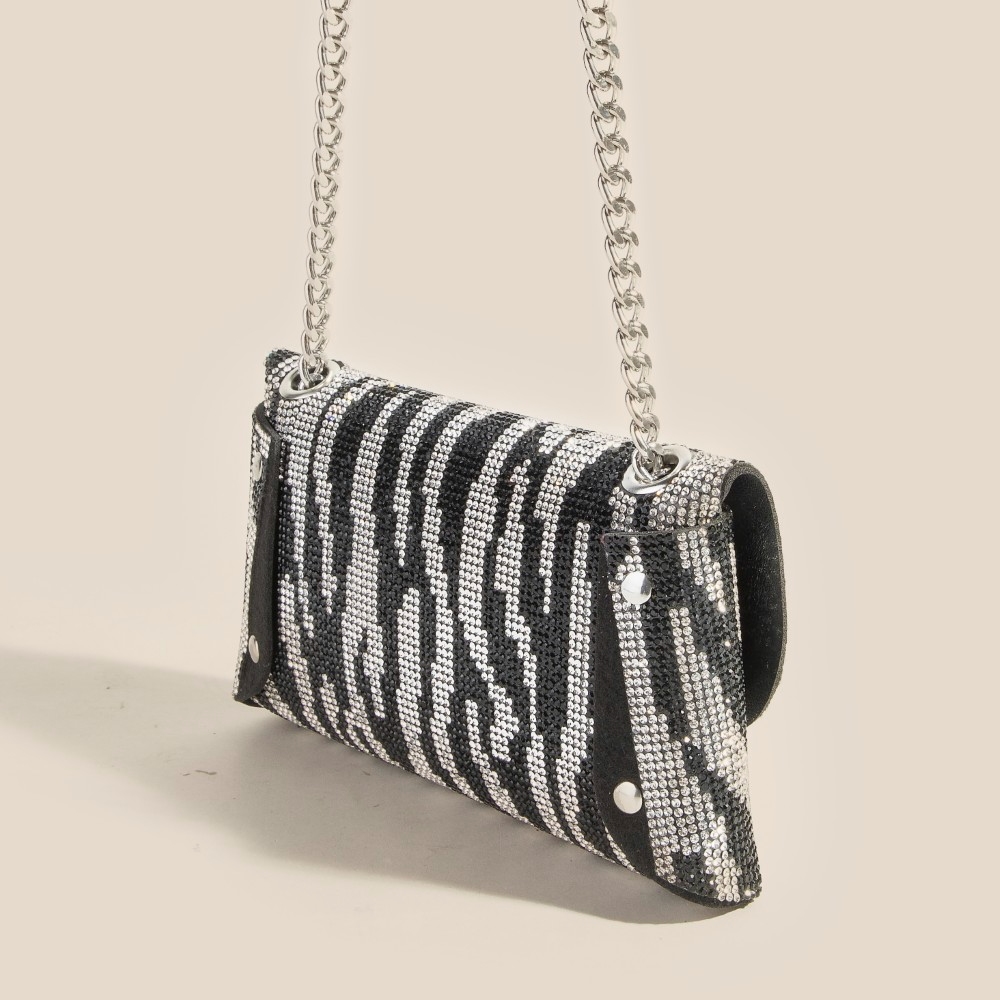 • Perfect for any occasion, this crossbody bag includes a stunning zebra print full rhinestone studded evening bag design. A chic and sophisticated crossbody bag that's perfect for dressing up or down. This item is sold in packs of 1.