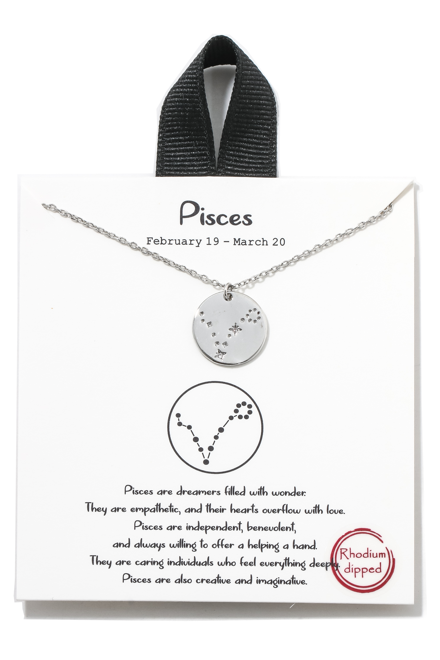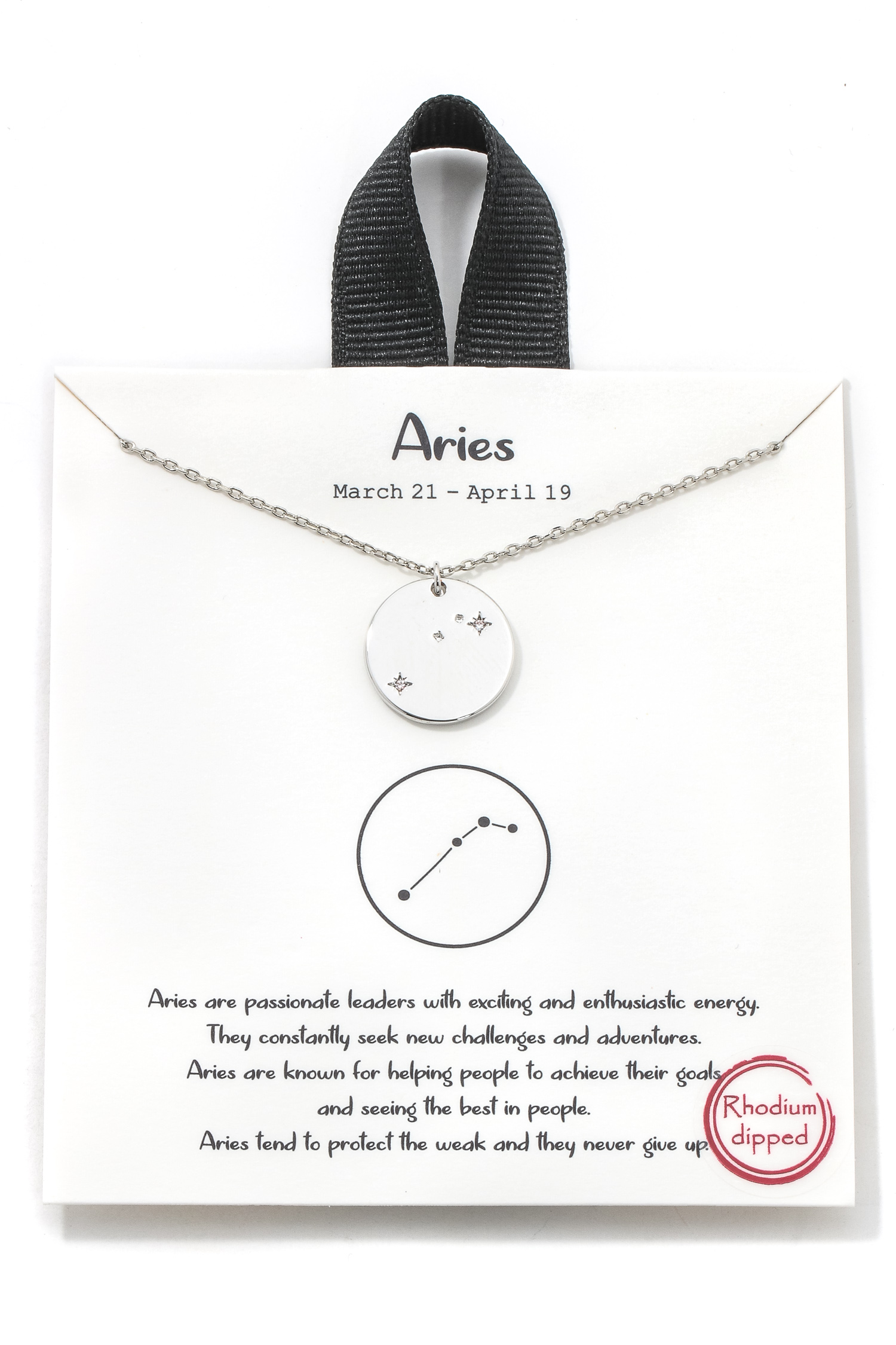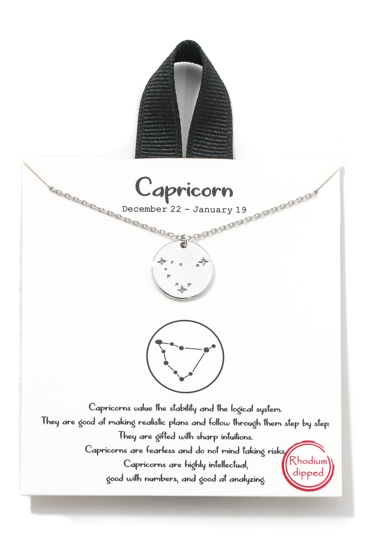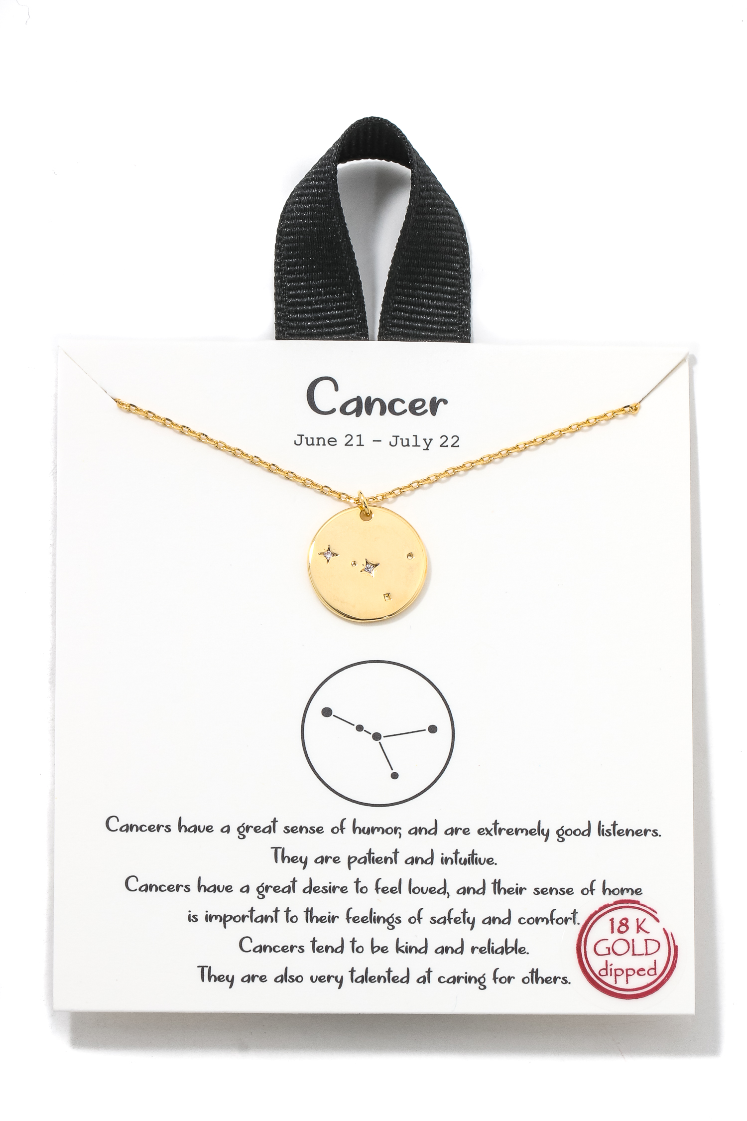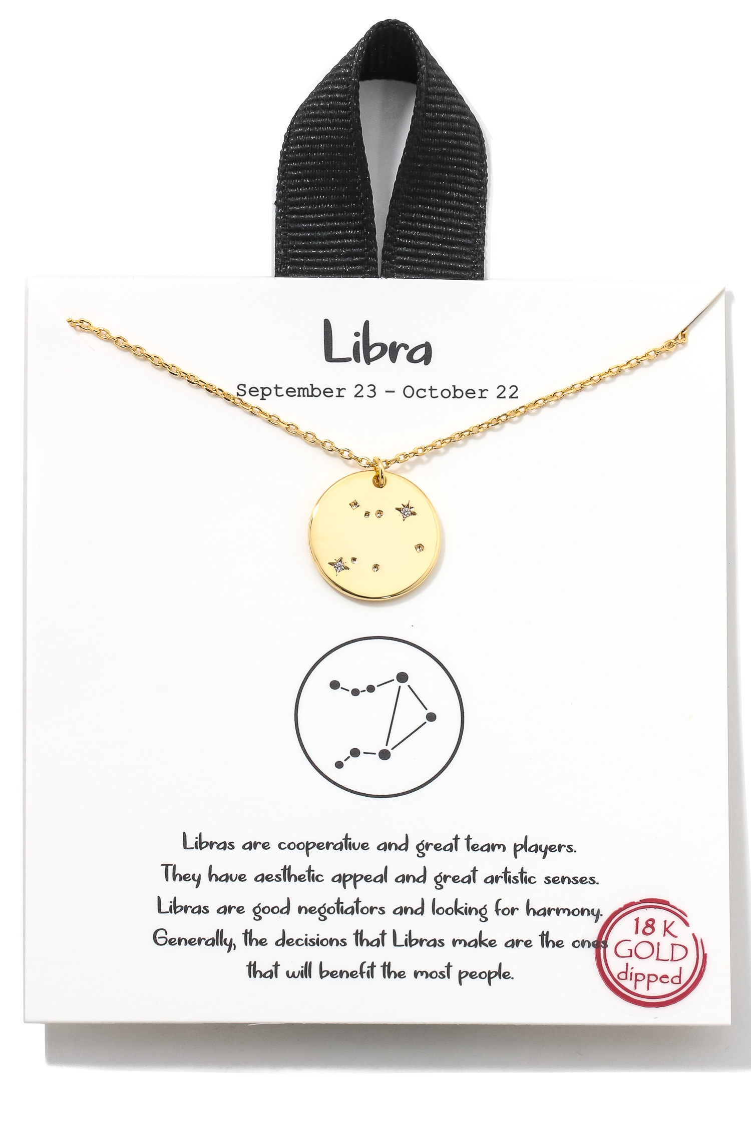 • A perfect in season must have necklace is made with detailed gold dip zodiac disc charm necklace design. Zodiac Constellation Perfect for this fall season! Available in Aqg,Aqs,Arg,Ars,Cng,Cns,Cpg,Cps,Geg,Ges,Leg,Les,Lig,Lis,Pig,Pis,Sag,Sas,Tag,Tas,Vig and Vis.