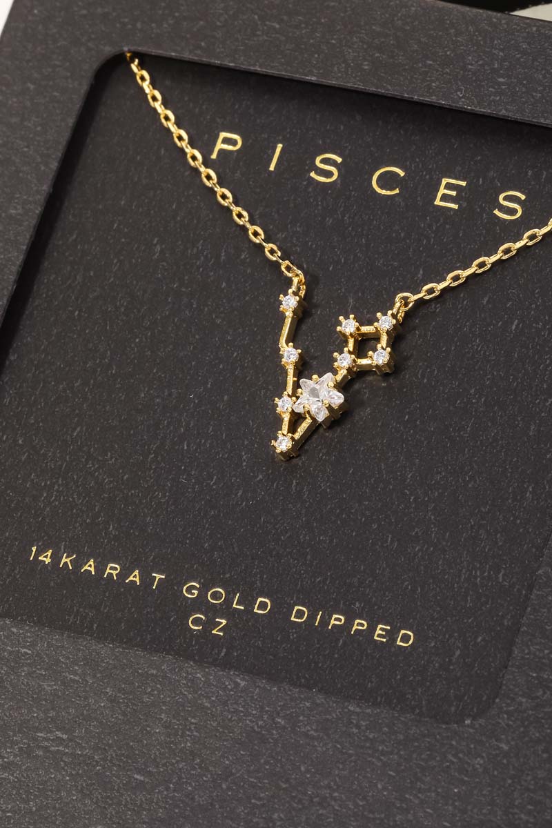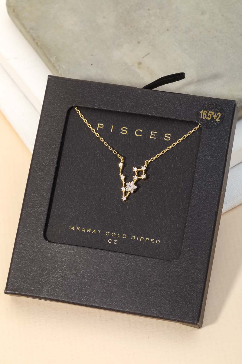 • Gorgeous in season trending must have gold dipped necklace that has a secret box pisces constellation necklace design. Perfect for the coming Spring season. Available in GD. This item is sold in packs of 1.