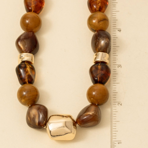 Chunk Marble Resin And Metallic Beads Necklace