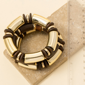 Chunky Gold And Brown Tone Bracelet Set