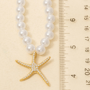 Gold Dipped Starfish Pendant Pearl Beaded Necklace