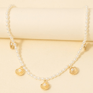 Clam Shell Charms Pearl Beaded Necklace