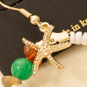 Starfish Beaded Stone Circle Drop Earrings