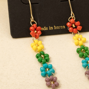 Seed Beaded Flower Chain Dangle Earrings