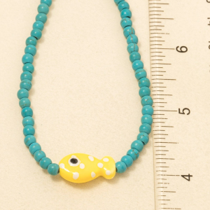 Ceramic Fish Pendant Glossy Colorful Beaded Necklace