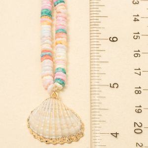 Metallic Dip Clam Shell Pendant Disc Beaded Necklace