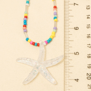 Iridescent Starfish Pendant Beaded Necklace