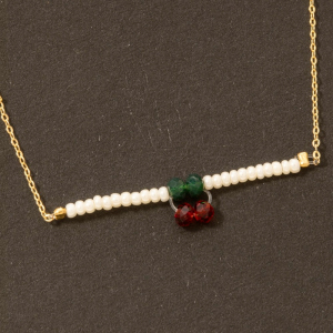 Dainty Beaded Bar Cherry Charm Necklace