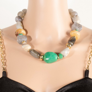 Semi Precious Stone And Metallic Beaded Necklace