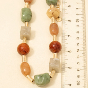 Resin Stones And Metallic Accent Beaded Necklace