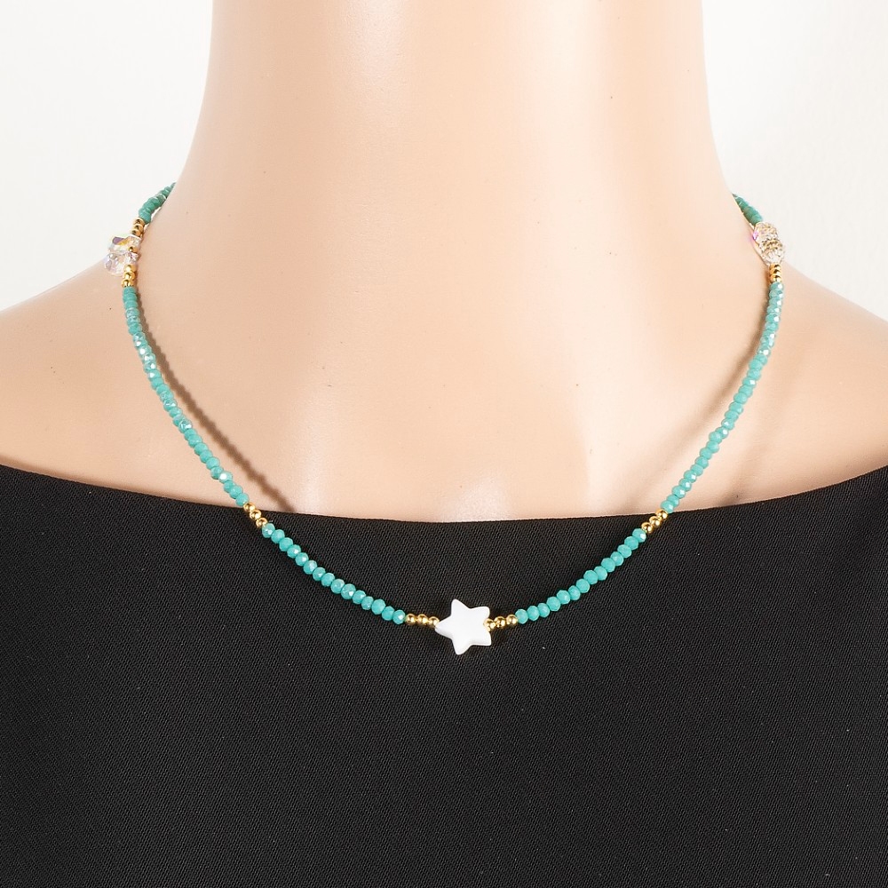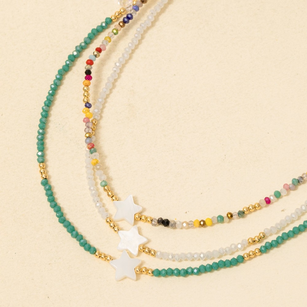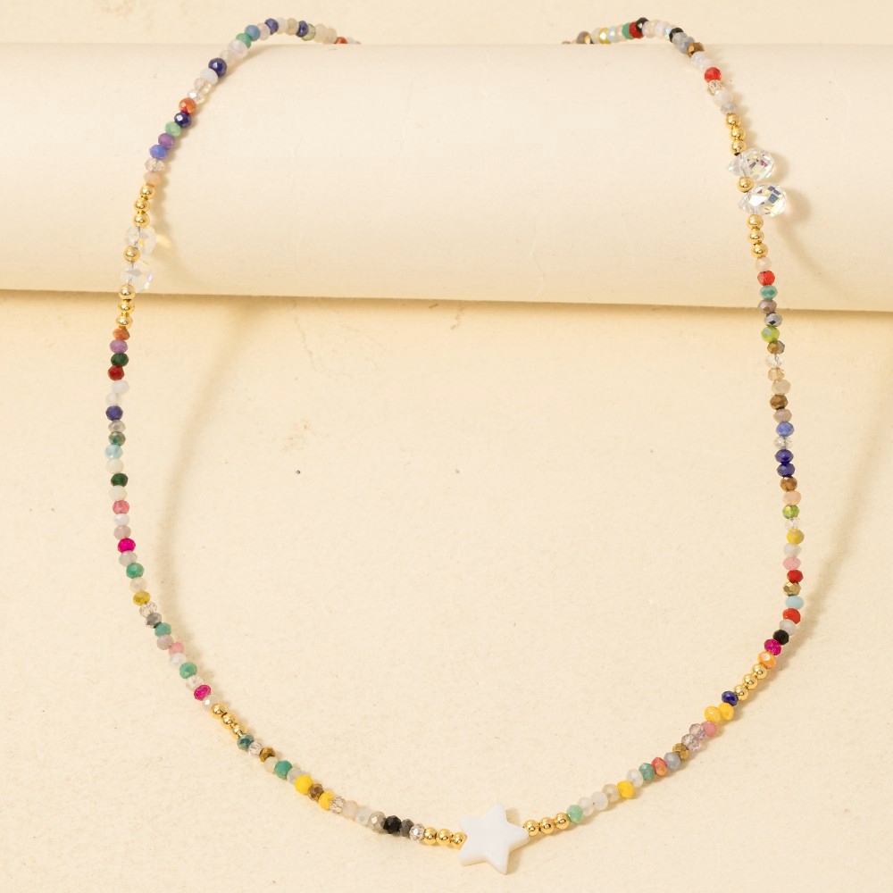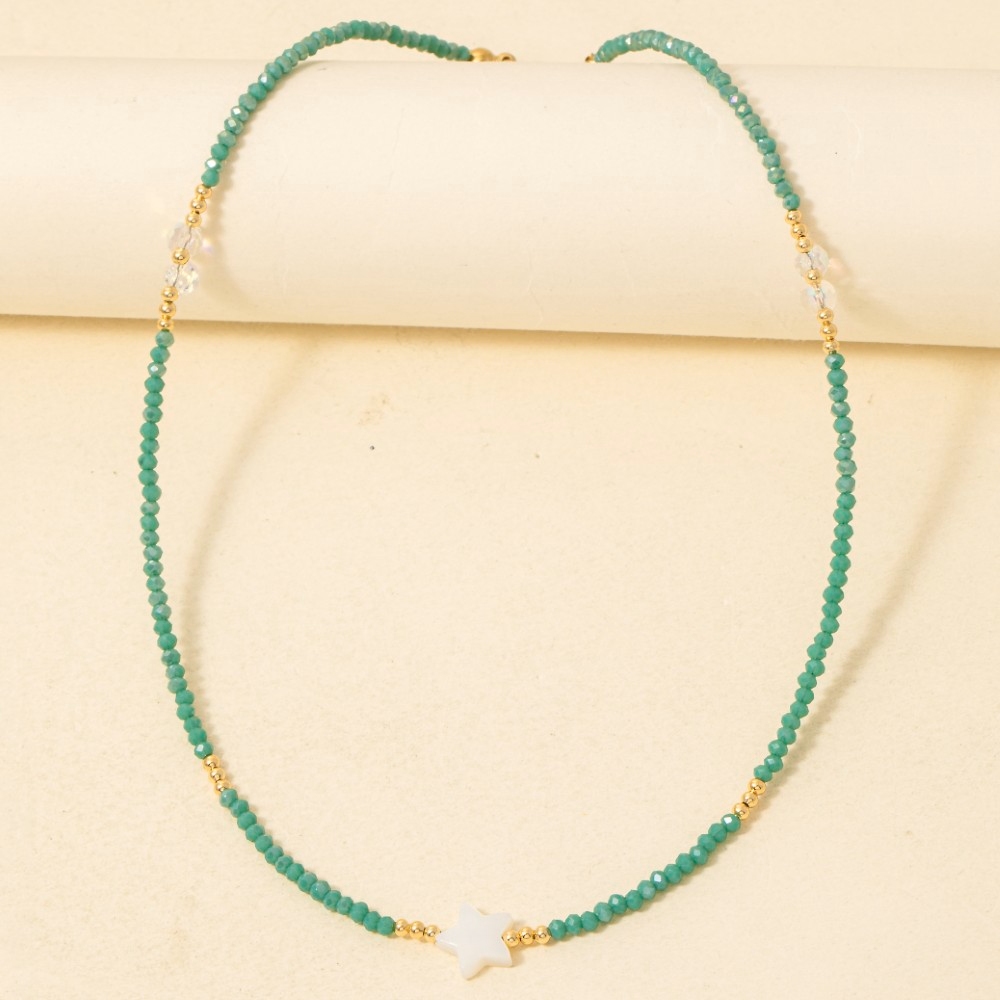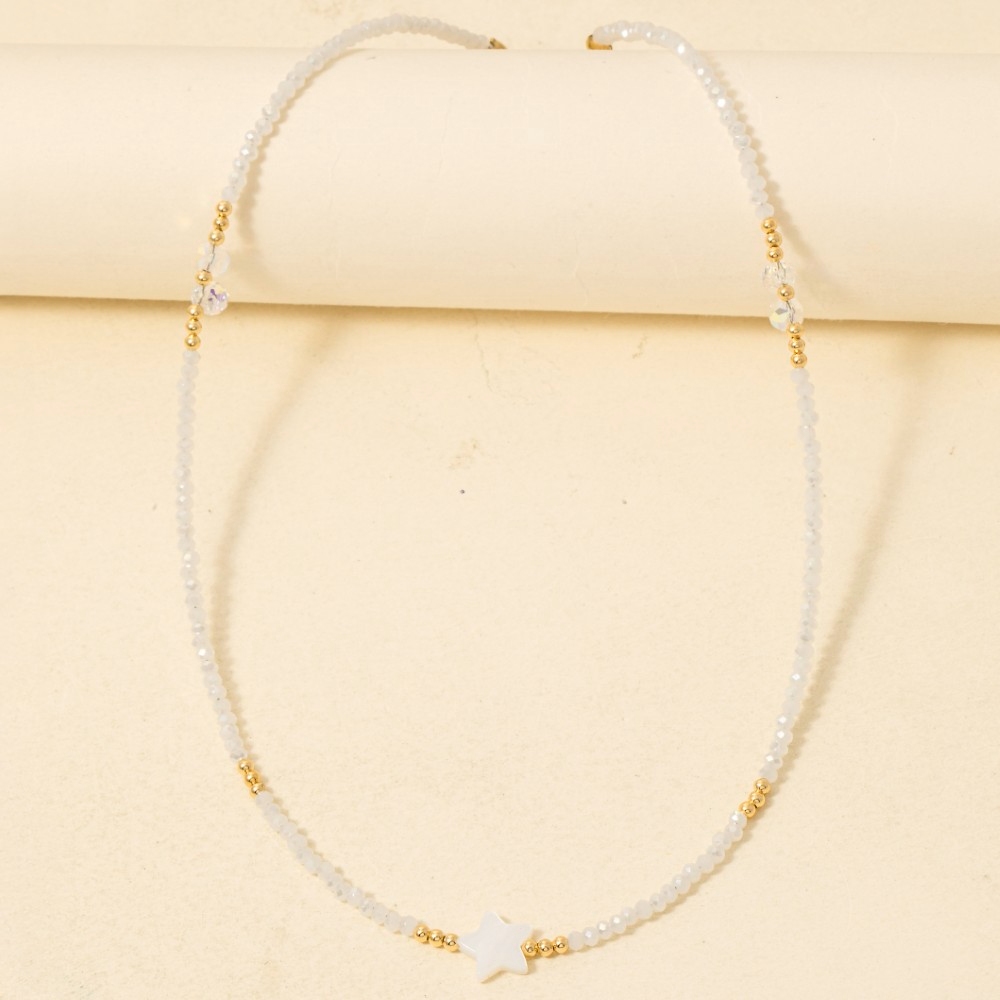 A piece that will never go out of style, this necklace radiates a sleek beaded star charm design. This necklace is a great way to add some glamour and sophistication to your outfit. This item is sold in packs of 1.