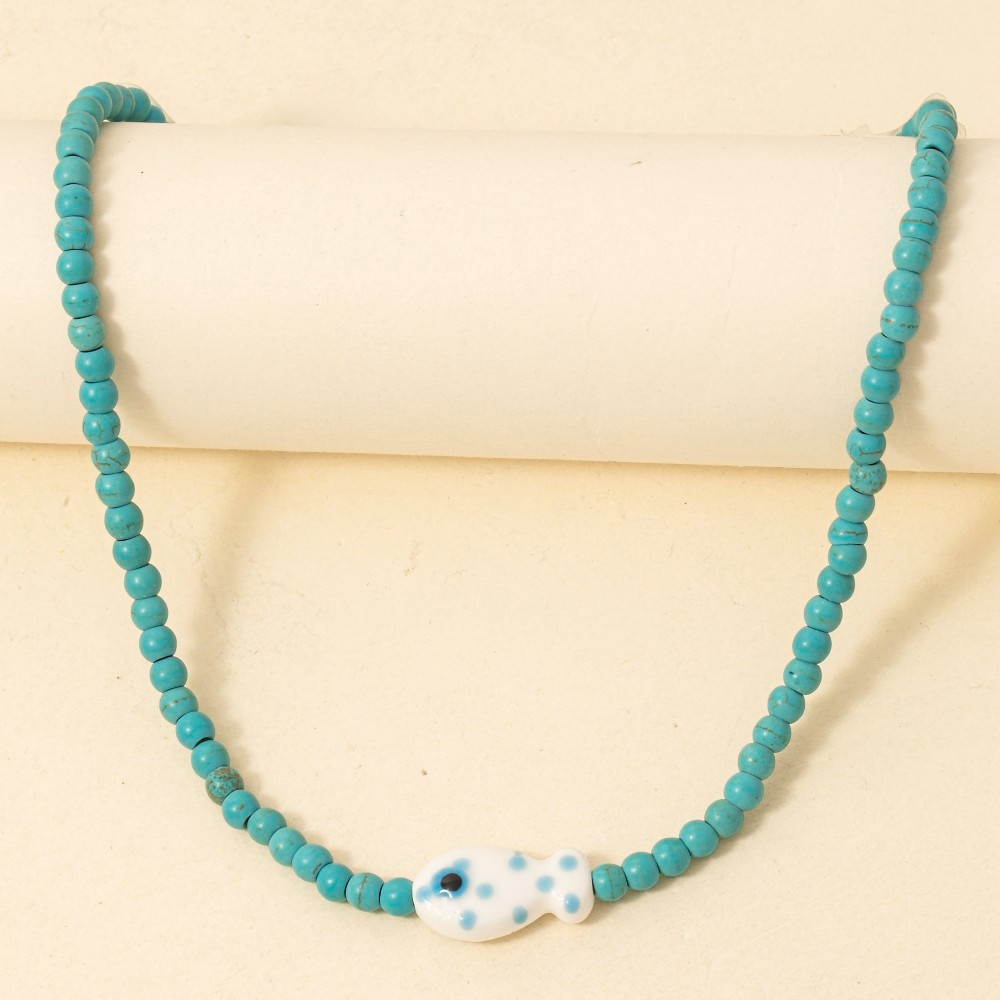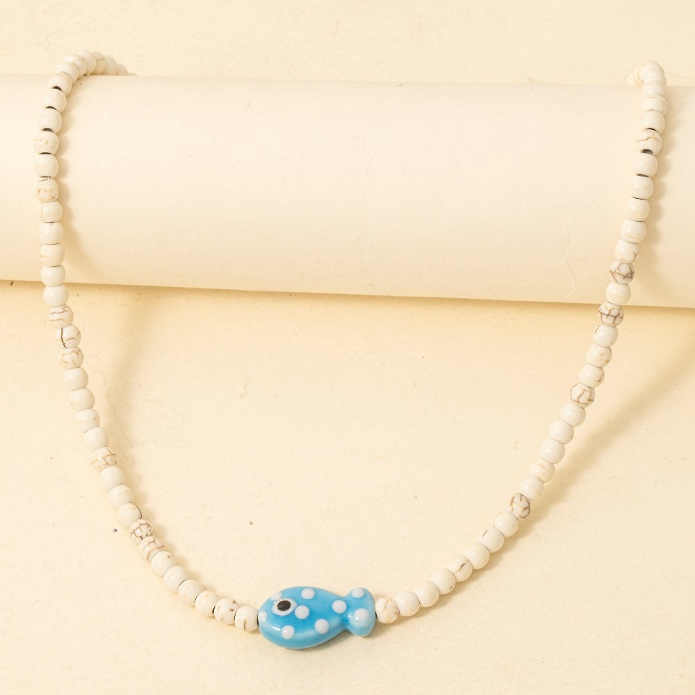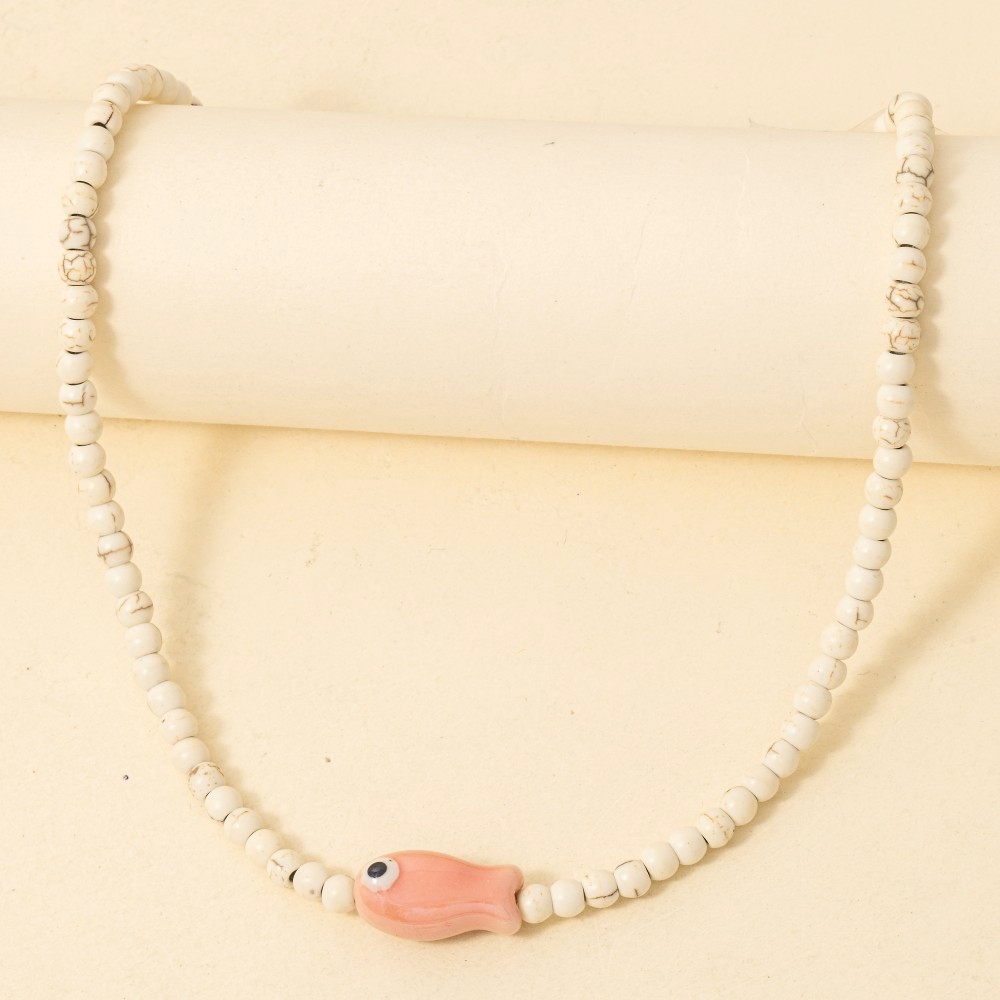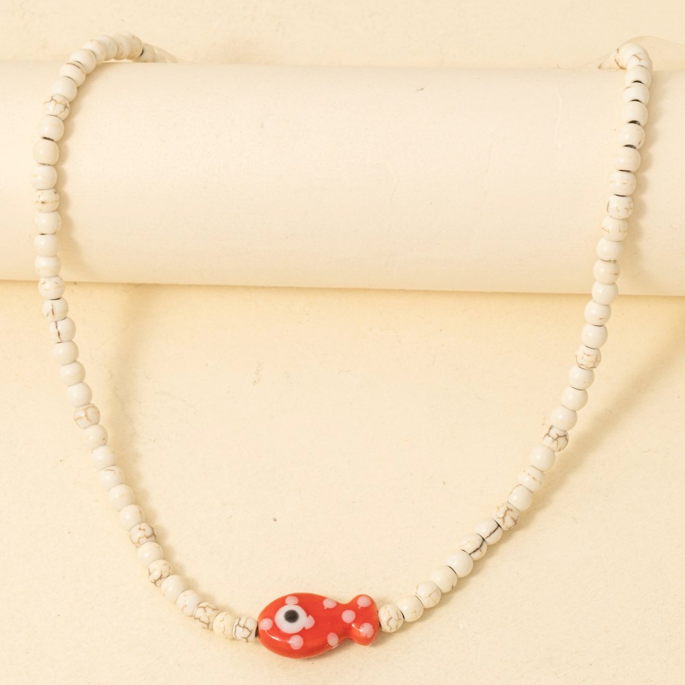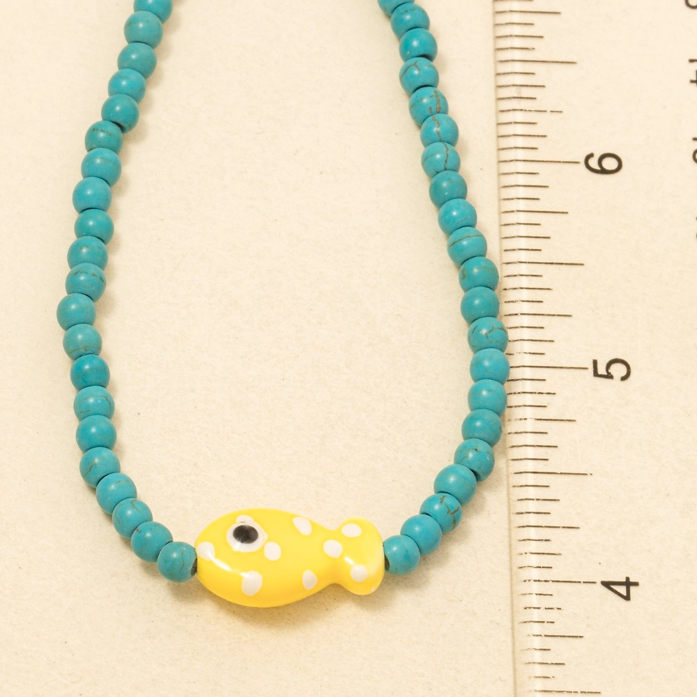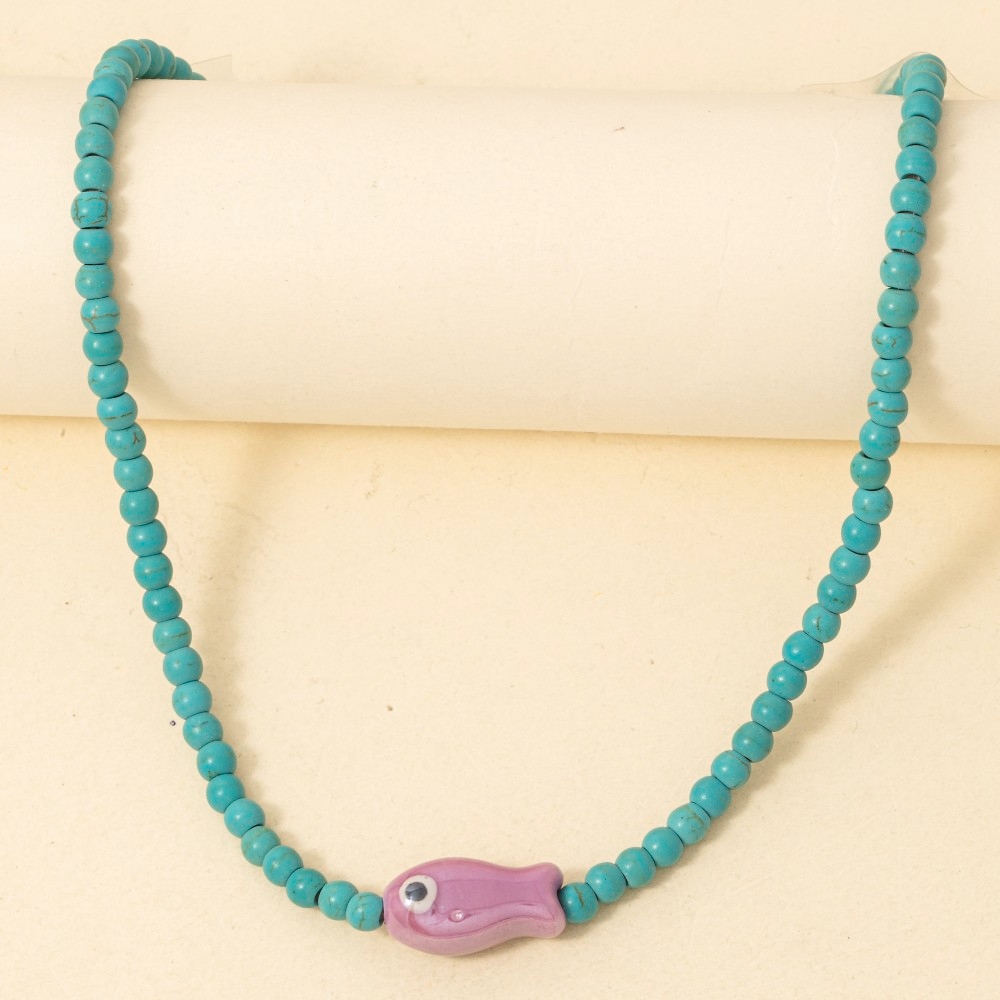 A unique and stylish piece that sets you apart, this necklace adds a distinctive ceramic fish pendant ball beaded design. This item is perfect for adding some color and vibrancy to any outfit. Available in BL, PK, PU, RD, WH, YE. This item is sold in packs of 1.