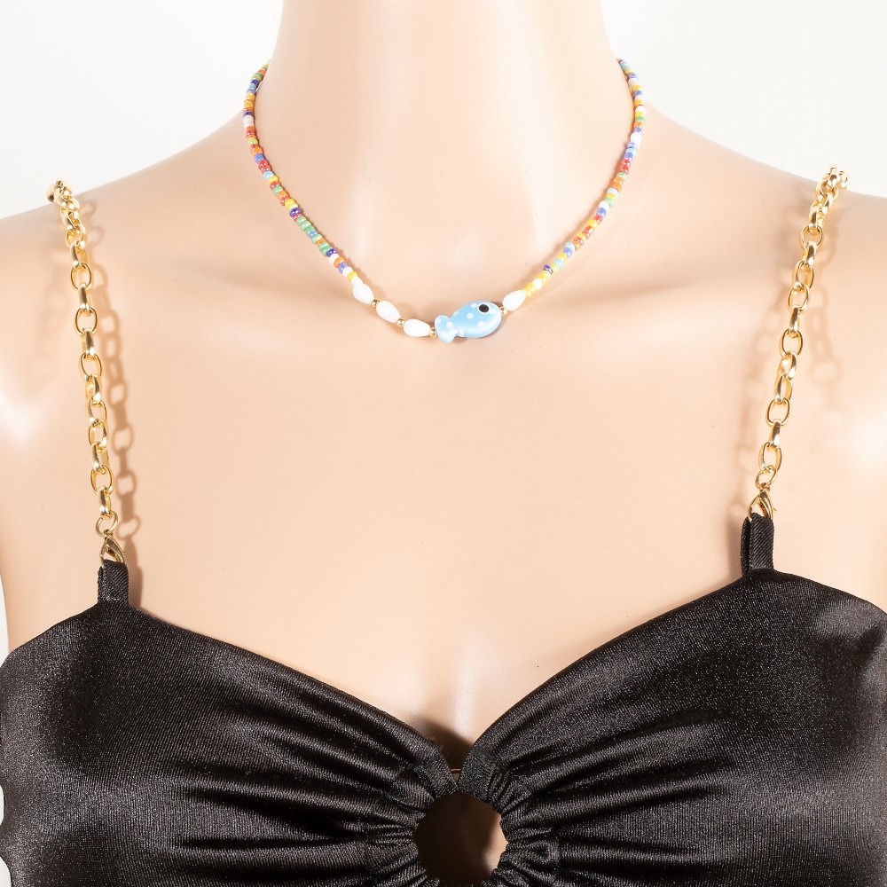 • Make a statement, this necklace flaunts a luxurious ceramic fish pendant glossy colorful beaded design. The perfect way to complete any outfit, whether you're dressing up or keeping it casual. Available in MU. This item is sold in packs of 1.