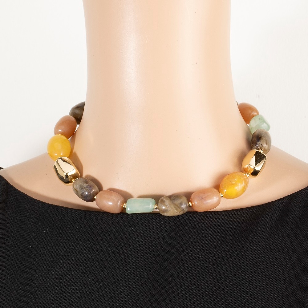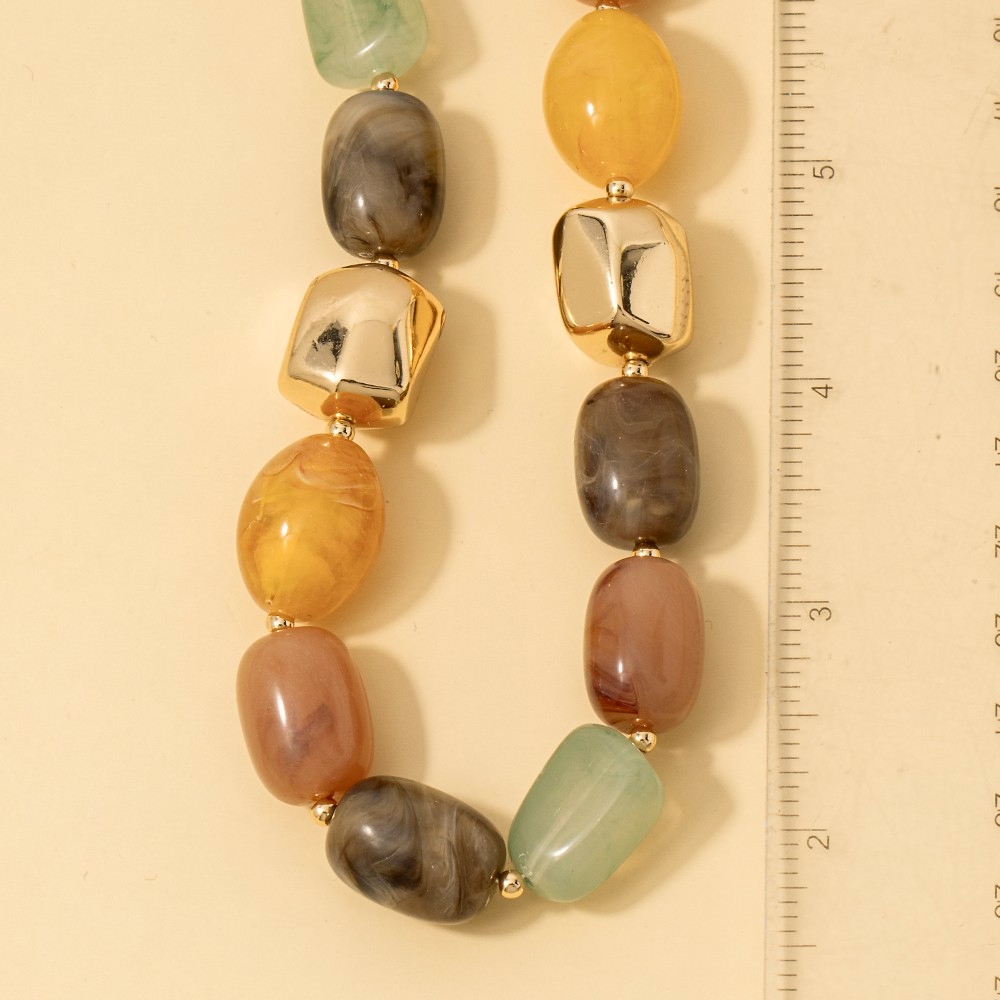 - A must-have addition to any necklace collection, this necklace brings a one-of-a-kind chunk marble resin and metallic beads design. This necklace is the perfect finishing touch to any outfit, adding a touch of sophistication and glamour. Available in RS, TQ. This item is sold in packs of 1.
