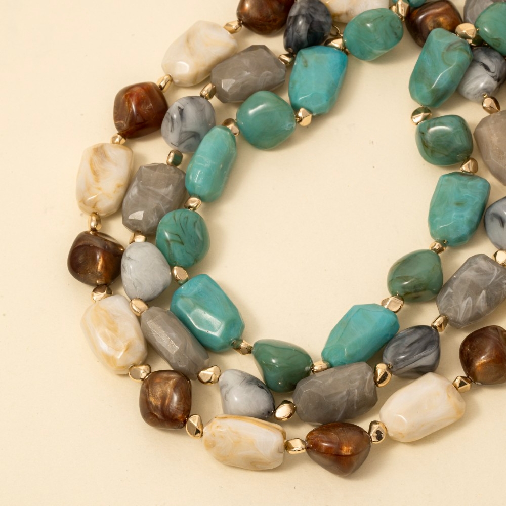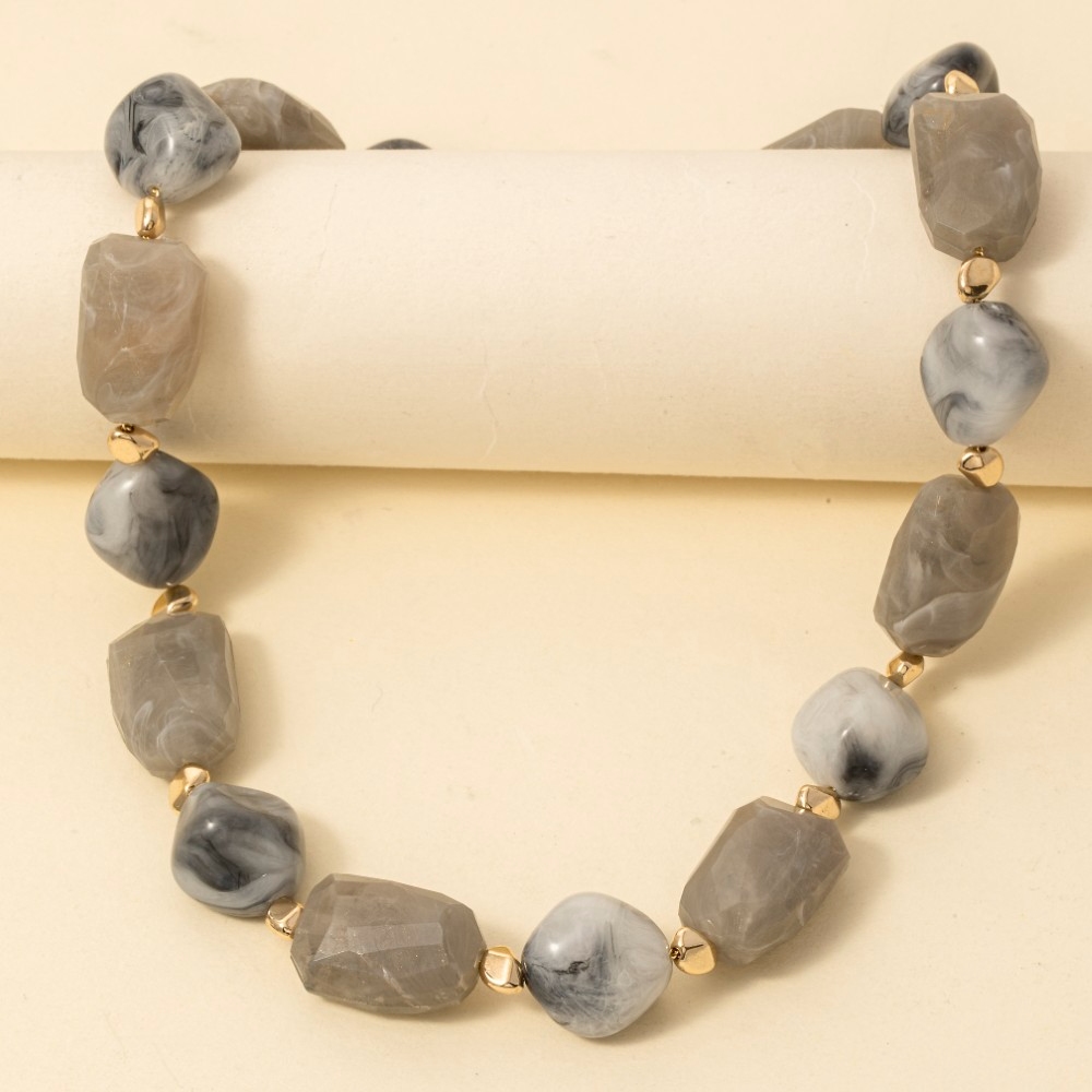 Marble Resin And Metallic Beaded Layered Necklace