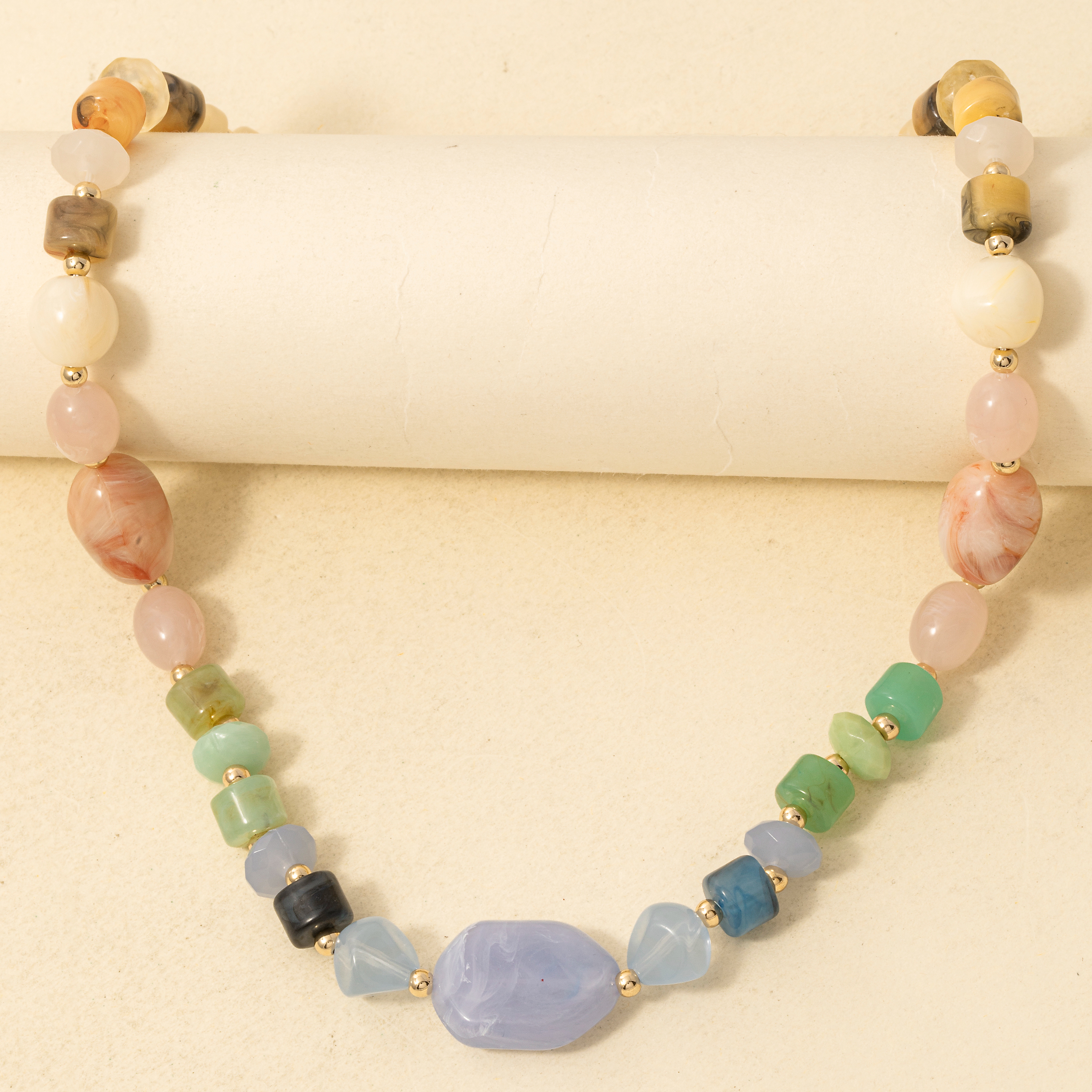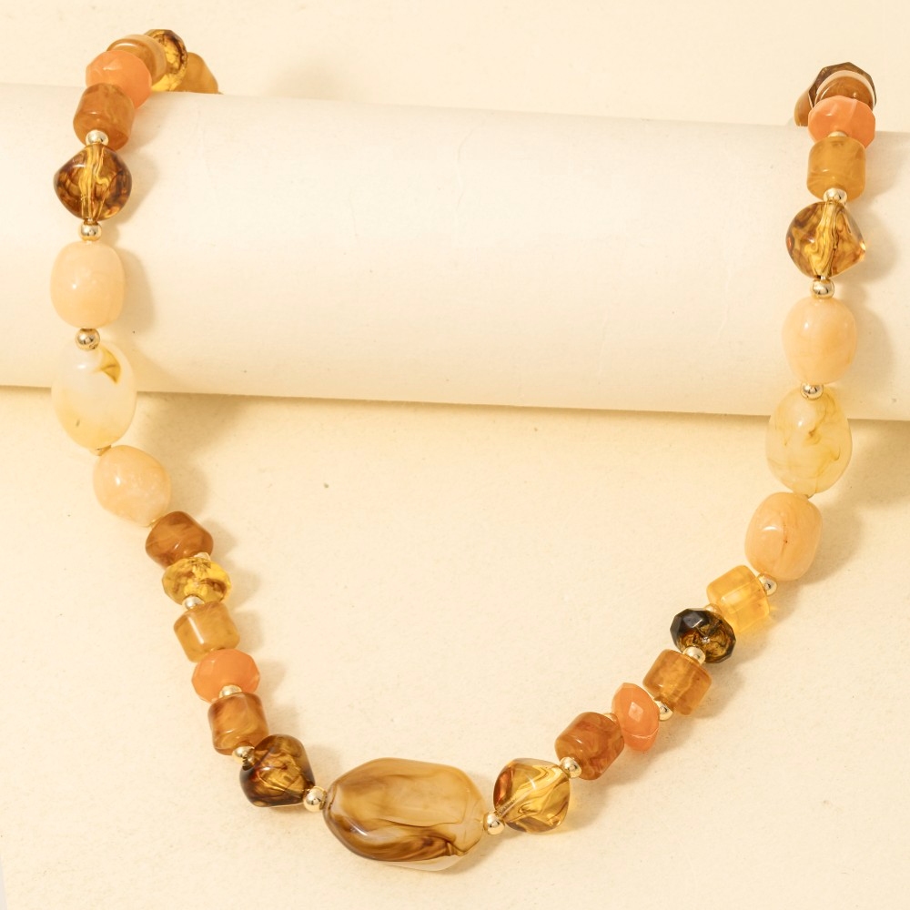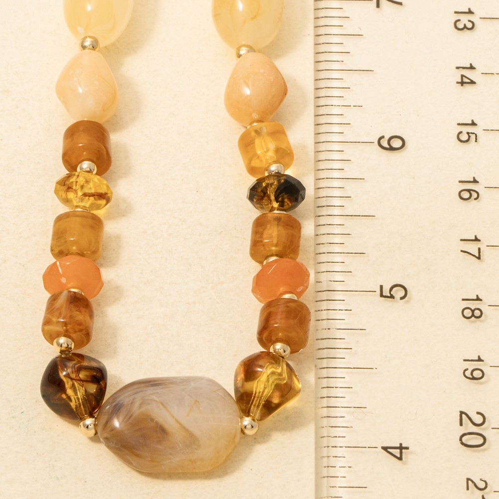 Marble Resin And Metallic Beaded Layered Necklace