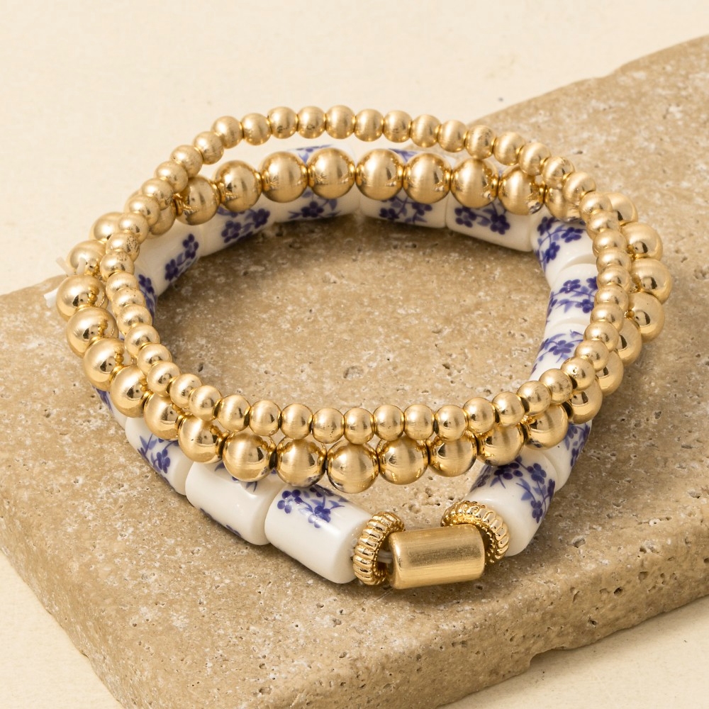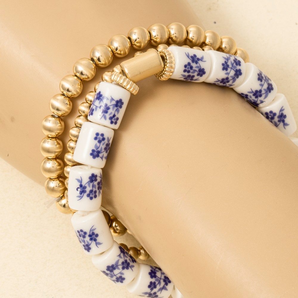• A versatile piece that can be dressed up or down, this bracelet comes with a special floral ceramic and metallic beaded set design. Add some personality to your outfit with this stylish bracelet. Available in BL. This item is sold in packs of 1.