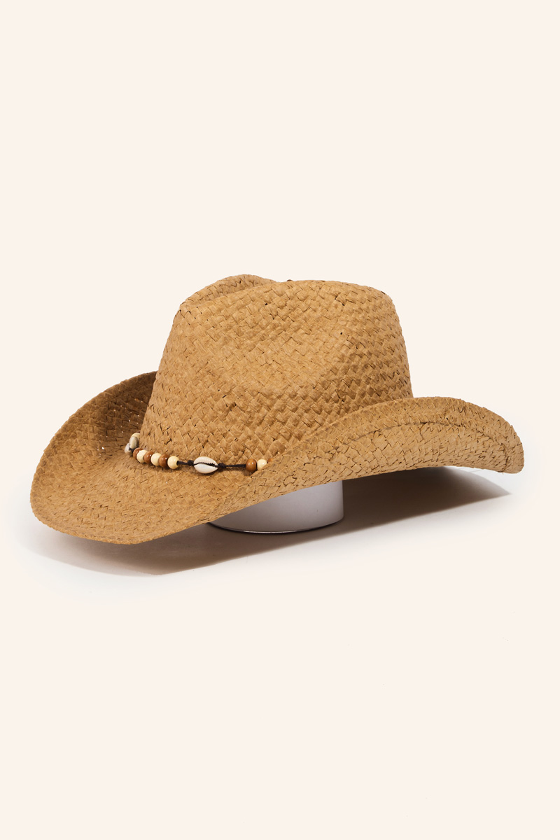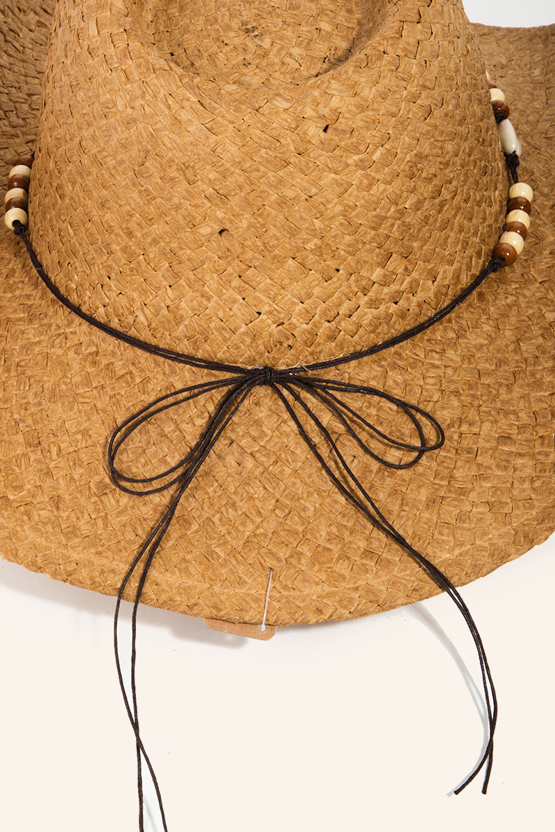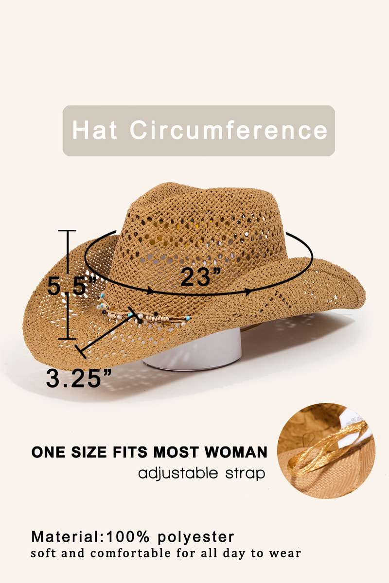 Straw Braided Concho Beaded Strap Cowboy Hat