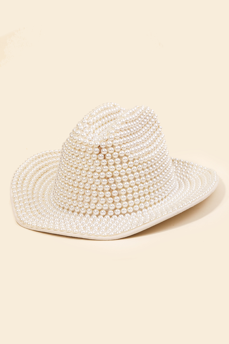 • Effortlessly elevate your outfit, this cowboy hat includes a stunning pearl beaded design. Transform your outfit into a fashion masterpiece with this versatile cowboy hat, an essential for the style-conscious individual. This item is sold in packs of 1.