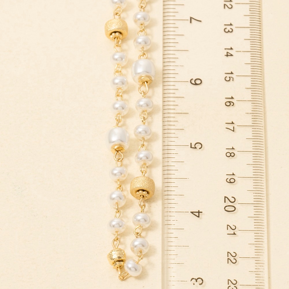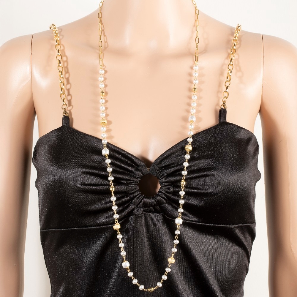 • This chain necklace is made with 45% Glass Pearl, 45% Base Metal Casting and 10% Metal Chain.