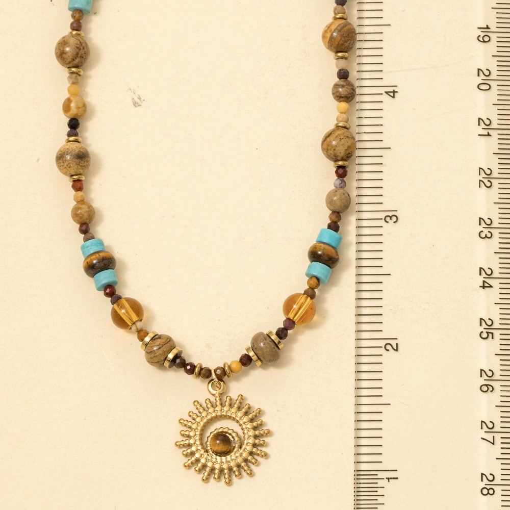 • Upgrade your necklace game, this necklace incorporates a flawless assorted beads circle sunburst pendant design. Add some personality to your outfit with this stylish necklace. Available in MU. This item is sold in packs of 1.