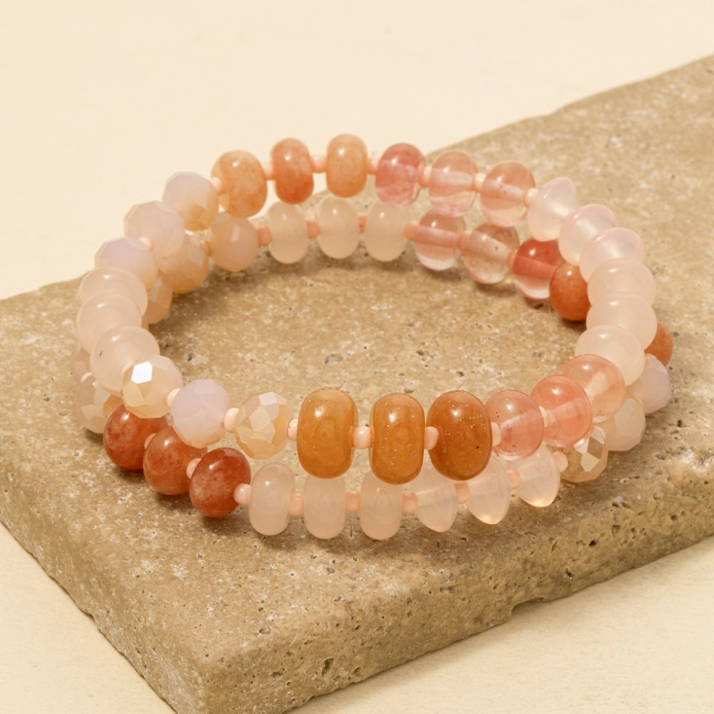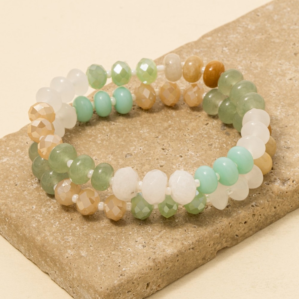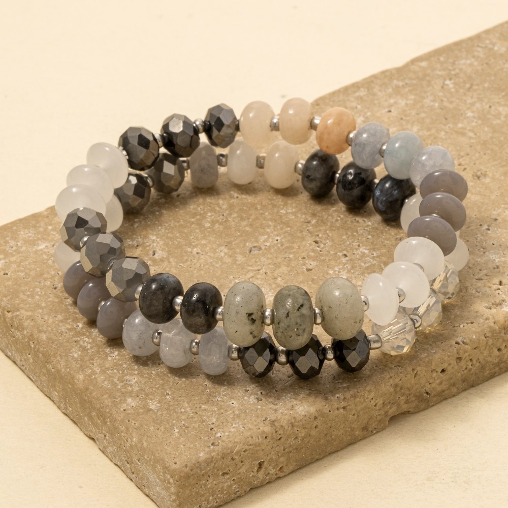 • This bracelet set is made with 50% Semi-Precious Stone 40% Glass 10% Acrylic.