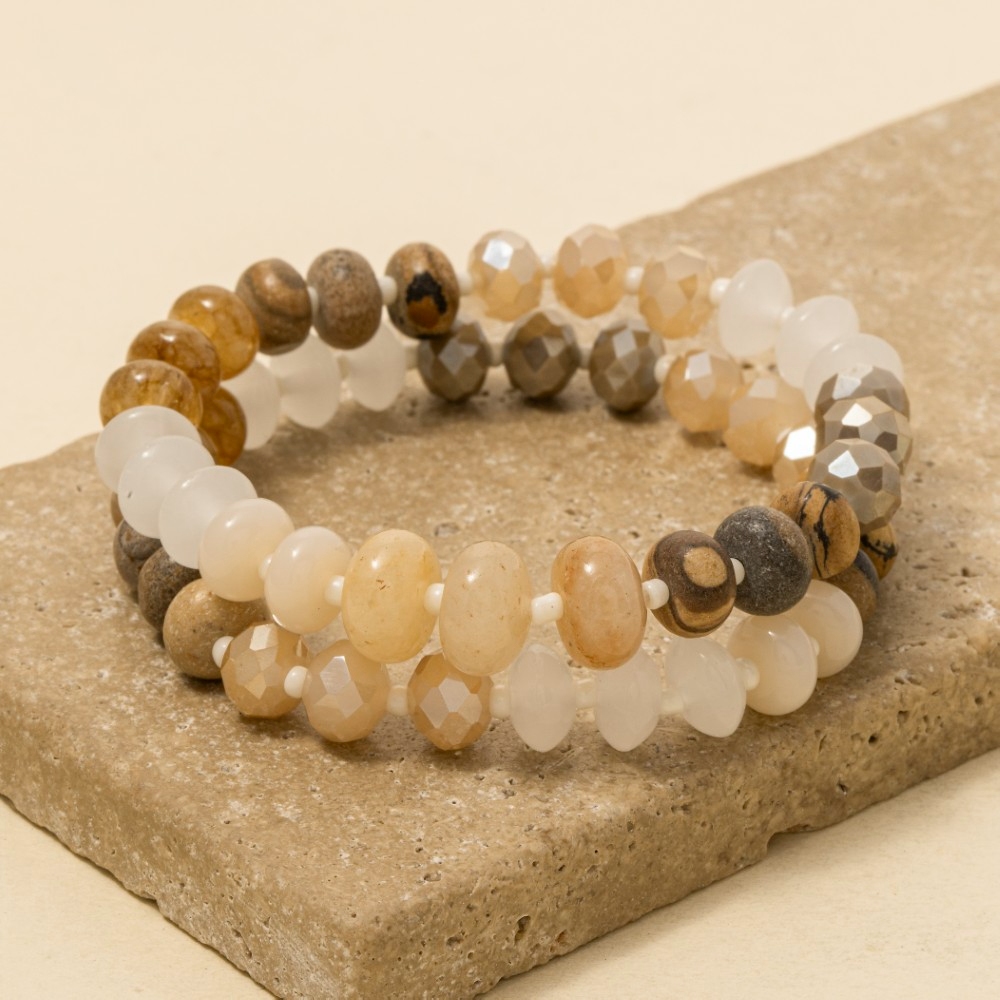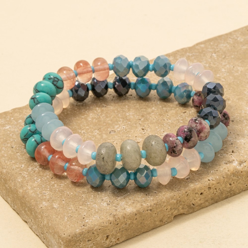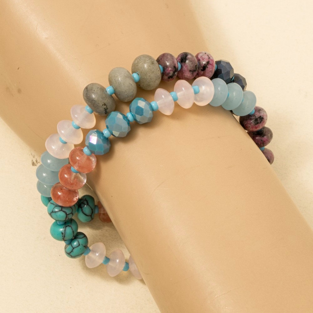 Mixed Chip Stone And Faceted Beads Bracelet Set
