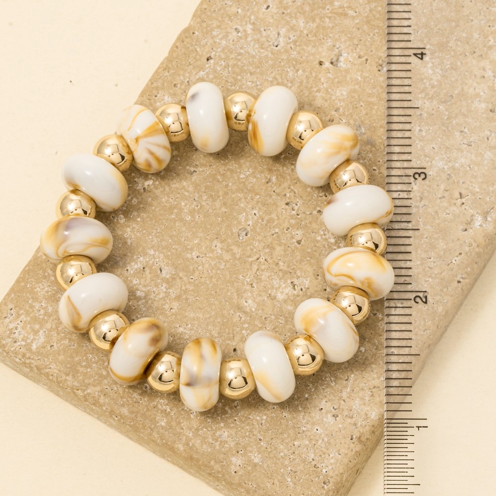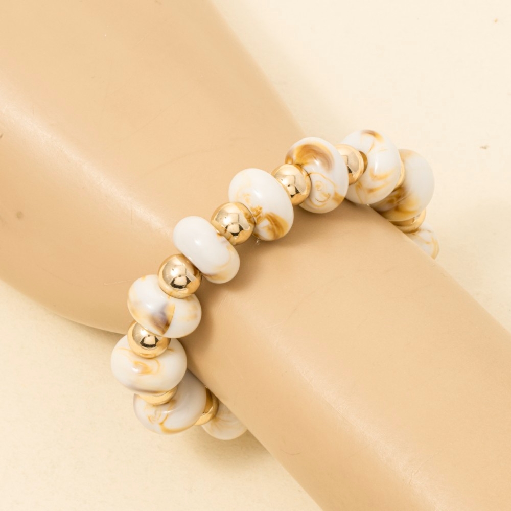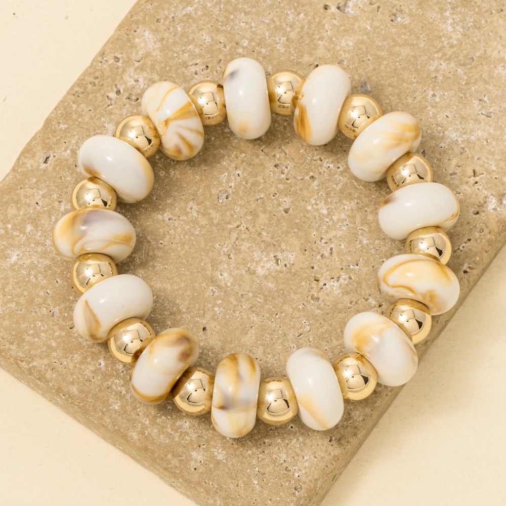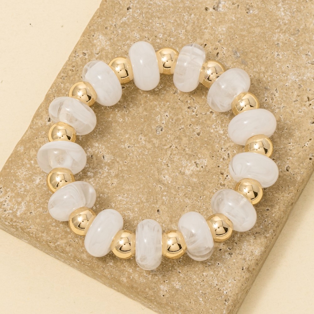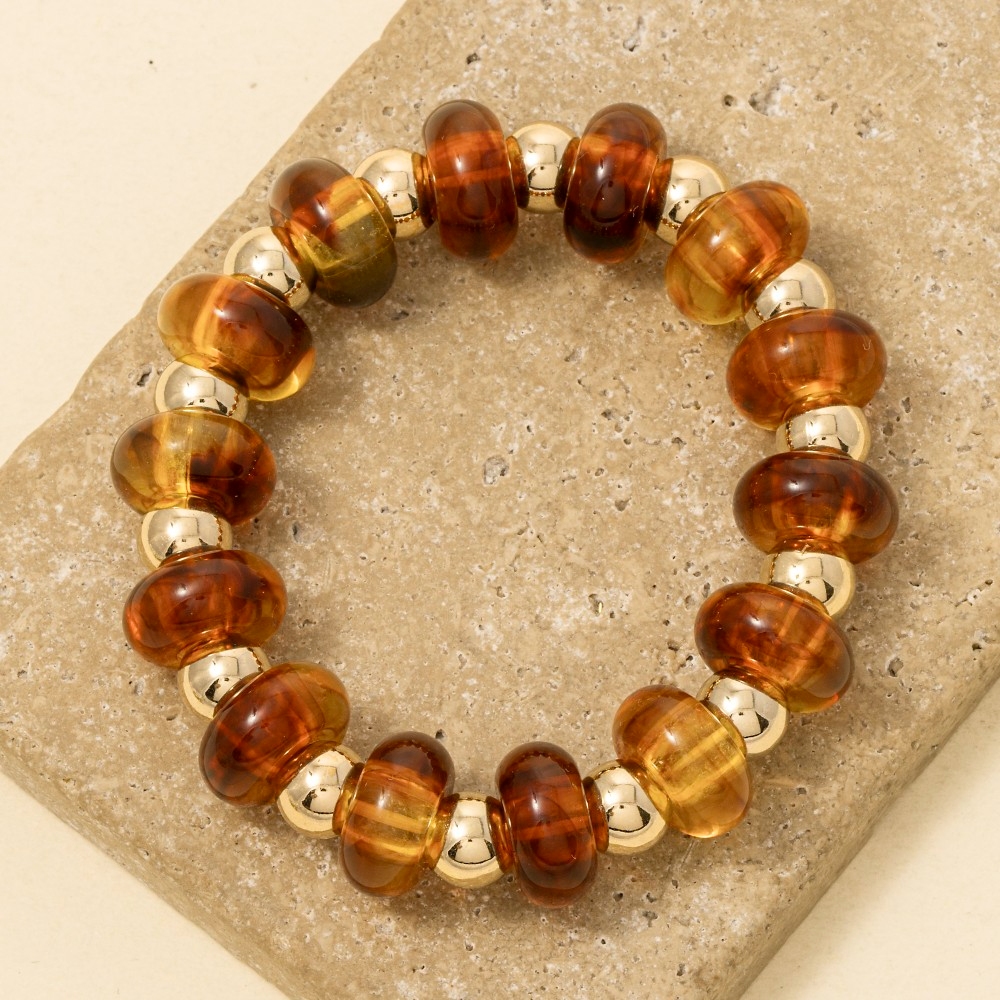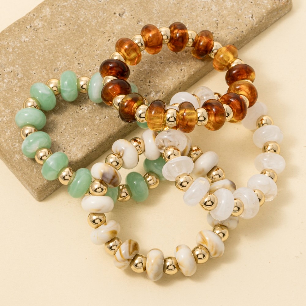 The perfect way to add some sparkle to your outfit, this stretch bracelet features an exceptional assorted resin beads design. This stretch bracelet is ideal for both casual and formal events, adding a touch of sophistication to any outfit. Available in GDBRW, GDMNT, GDTOR, GDWH. This item is sold in packs of 1.