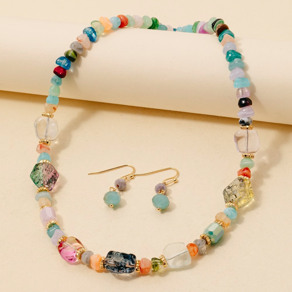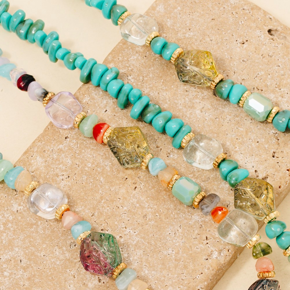 • A bold and daring choice, perfect for those who want to stand out from the crowd, this necklace set encompasses a grand assorted stone and resin beaded design. Perfect for any occasion, this versatile necklace set will enhance any outfit you wear. Available in MT, TQ. This item is sold in packs of 1.