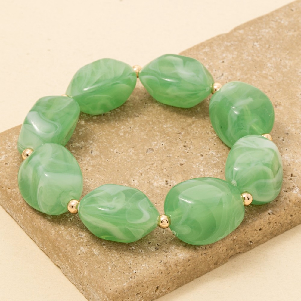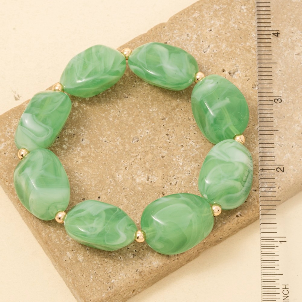 - Perfect for any fashion-forward individual, this bracelet exudes a refined chunky marble resin beaded design. Elevate your fashion ensemble effortlessly with this versatile bracelet, a stylish choice for the modern trendsetter. Available in BPINK, LBLU, LGRN, WHT. This item is sold in packs of 1.