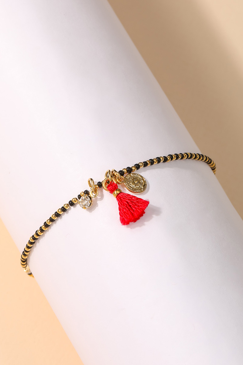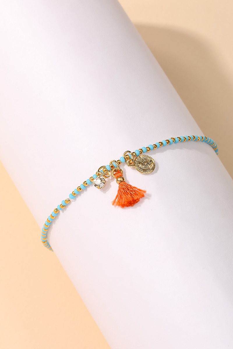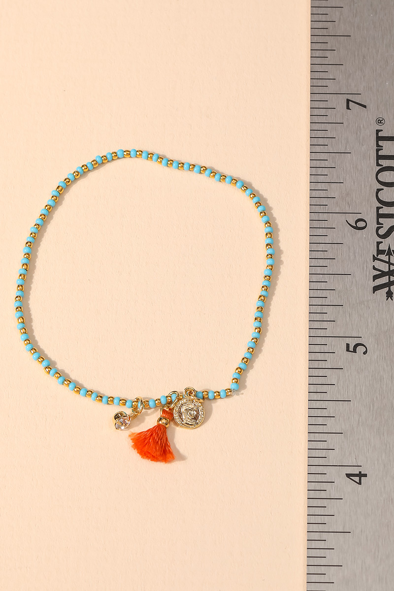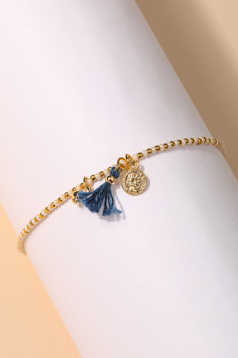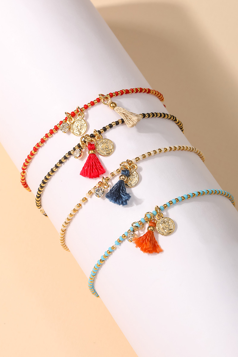 This new soon to be trending bracelet has a unique dainty beaded coin tassel stretch bracelet design. Perfect for casual events and daily wear. This matches almost any outfit you have planned!